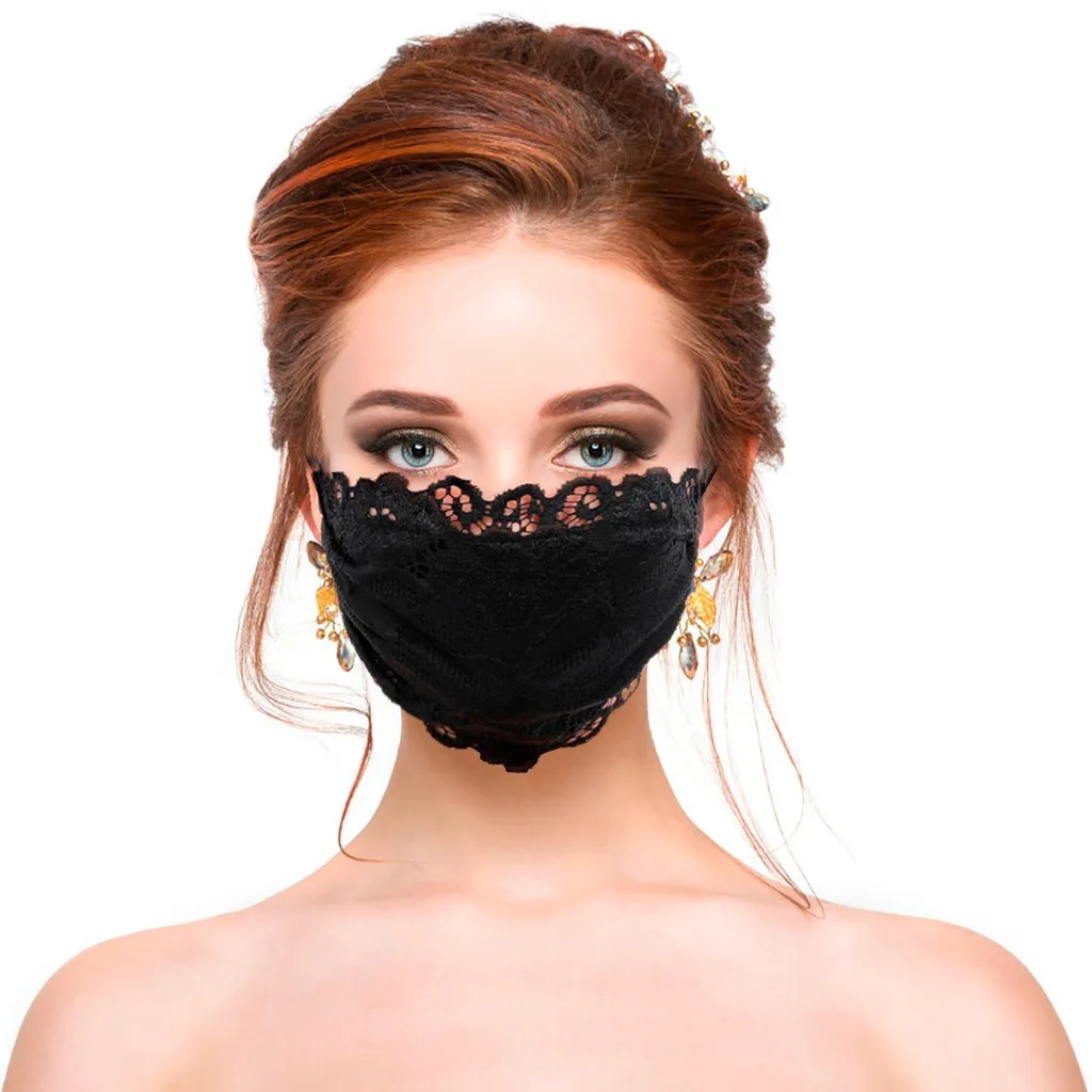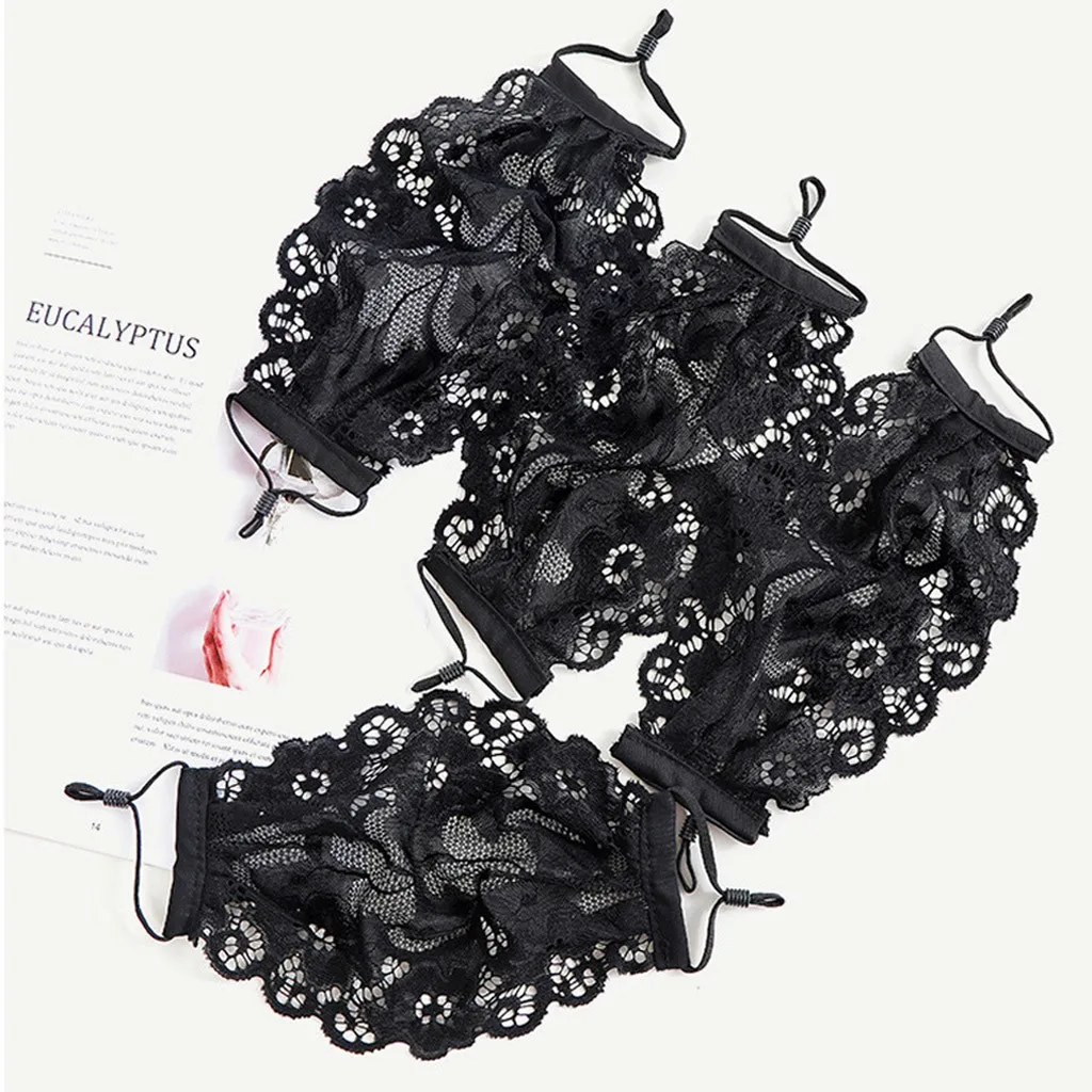 Женская Однослойная Черная кружевная Регулируемая сетчатая тонкая дышащая маска