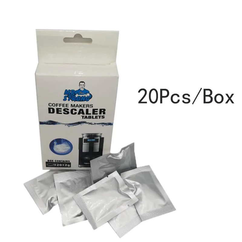20 шт./коробка для кофемашины, таблетки для удаления накипи, горячий стиль, чистящая машина, внутренняя стенка, кофейник, чистящий лист, кухонные аксессуарыНазвание бренда: MR.STRONGЦвет: белыйУпаковка: 20 шт./кор.Вес: 90 гПараметры: 2 г/шт. 20 шт./кор.Характеристики: cafeteraМатериал: Этот продукт был сделан в основном сЛимонная кислота