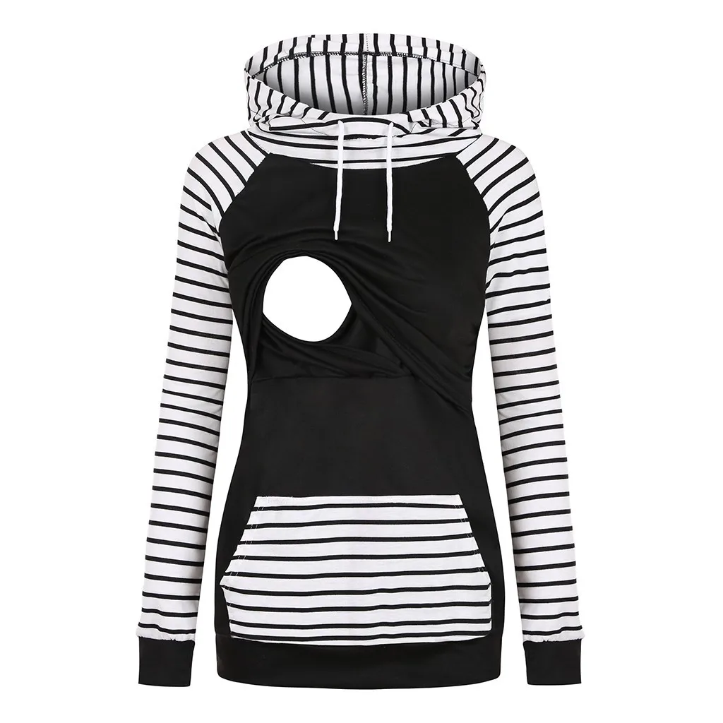 Женская толстовка с капюшоном и карманами для беременных, топы для грудного вскармливания