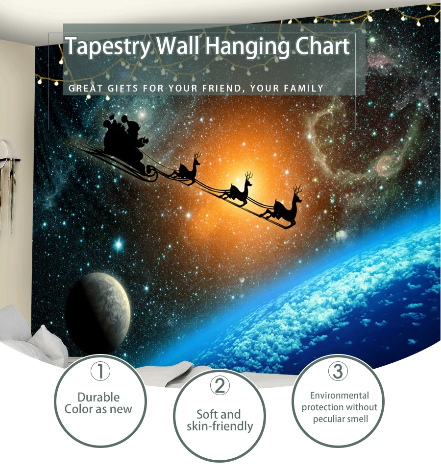 Санта-Клаус гобелен настенный Рождество Луна фантазия звездное небо одеяло галактика индийская Мандала шаблон Одеяло Рождественский подарок