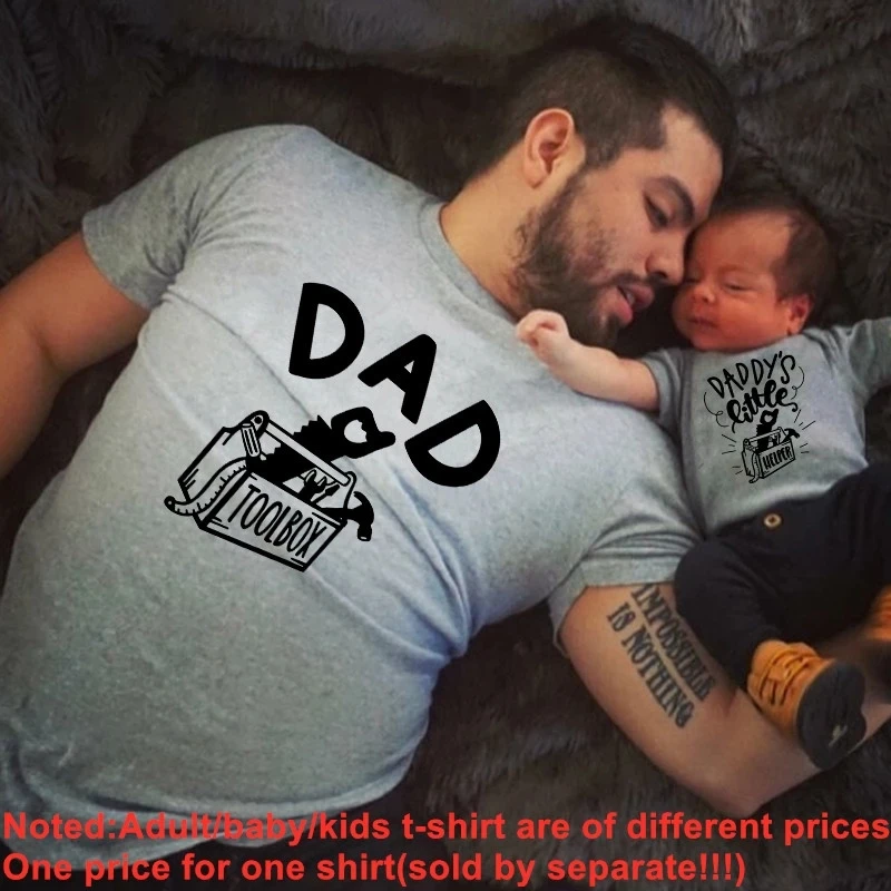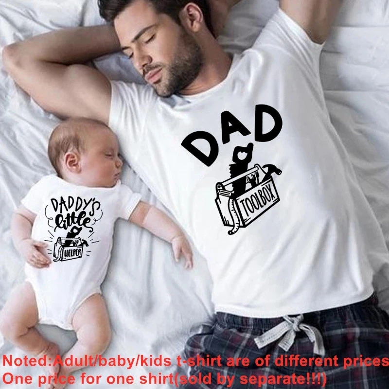 Папа и надписью Daddy's Little Helper Семейные комплекты футболки для папы и дочки; Одежда для папы и сына соответствующие топы в подарок для мамы, папы и ребенка