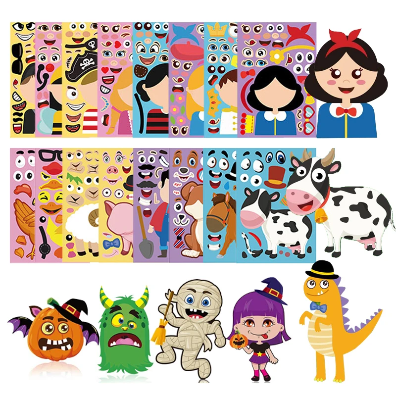 Детские наклейки-пазлы сделай сам, игры, принцесса, животное, динозавр, сборная головоломка, Детская обучающая развивающая игрушка, сувениры Вечерние