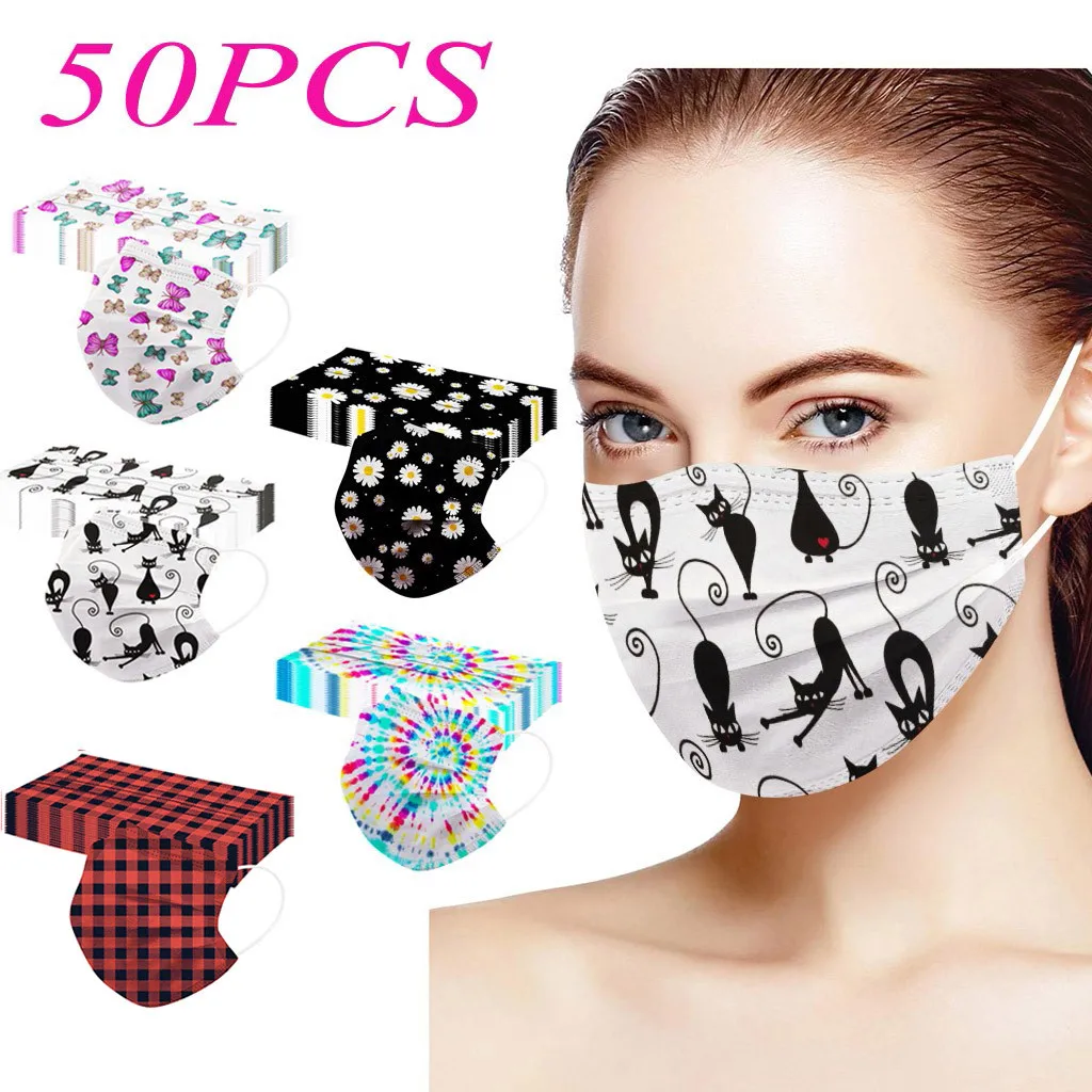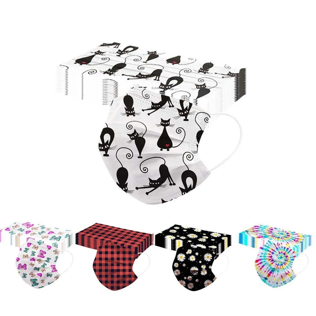 Маска одноразовая унисекс с принтом кошки, 3-слойная Пылезащитная, ...