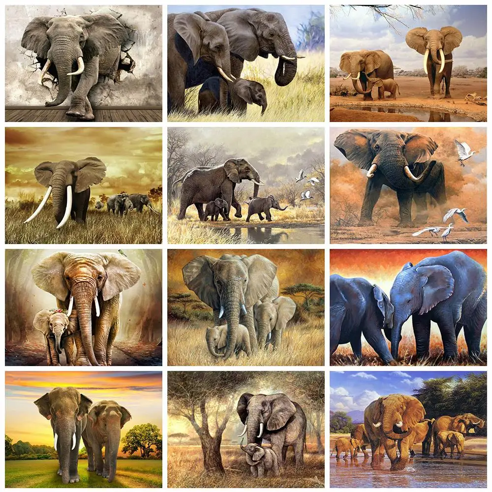 Полноформатнаякруглая алмазная живопись со слоном 5D, вышивка крестиком, мозаика, вышивка животными, картины из страз, Алмазный Набор для творчества