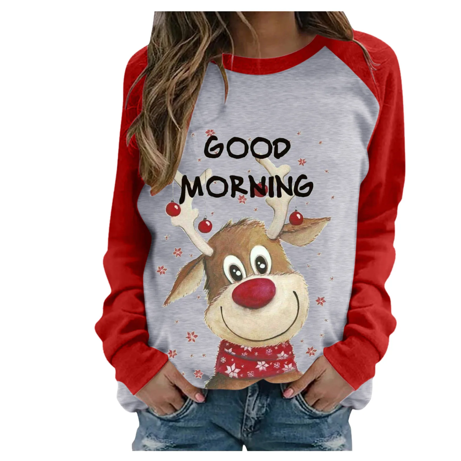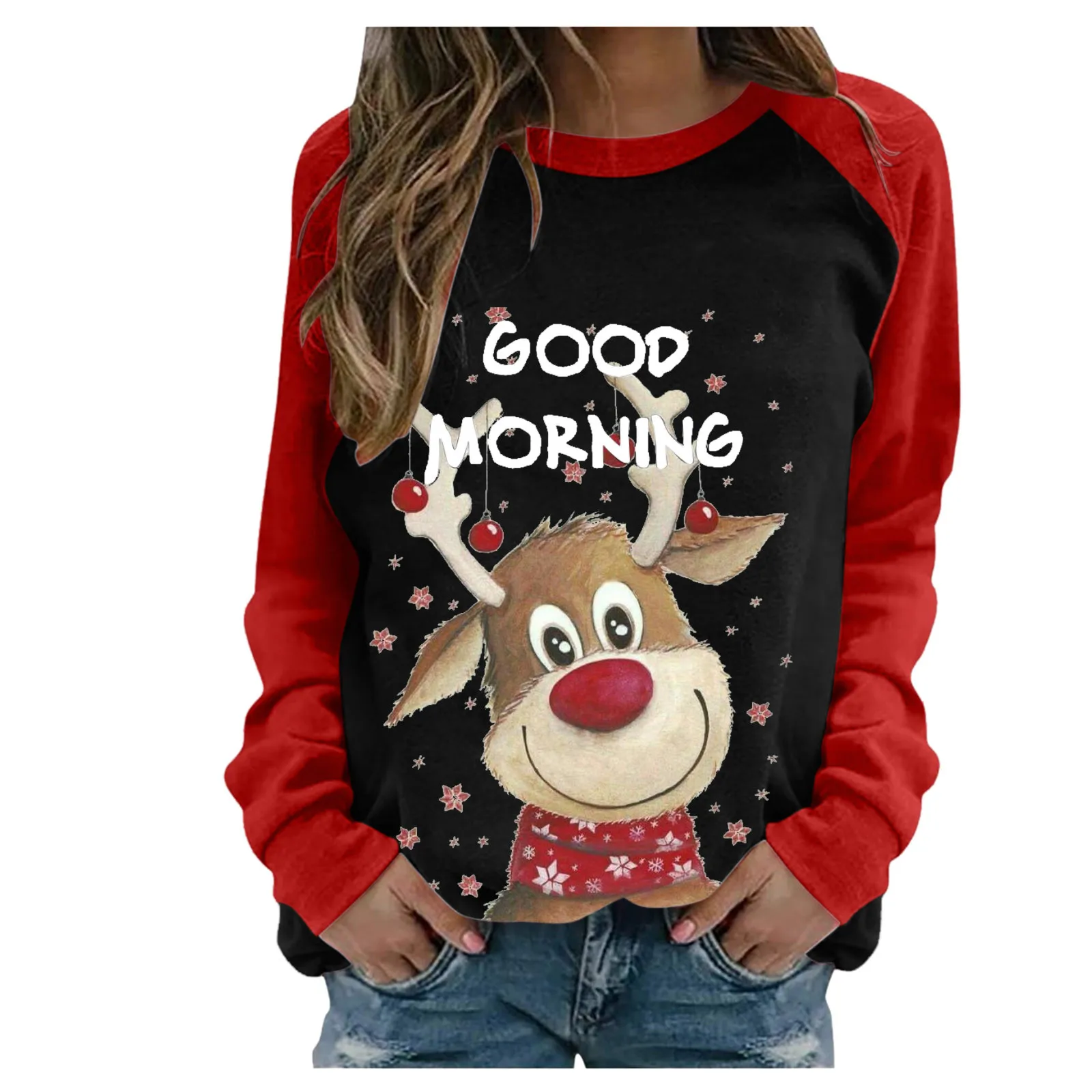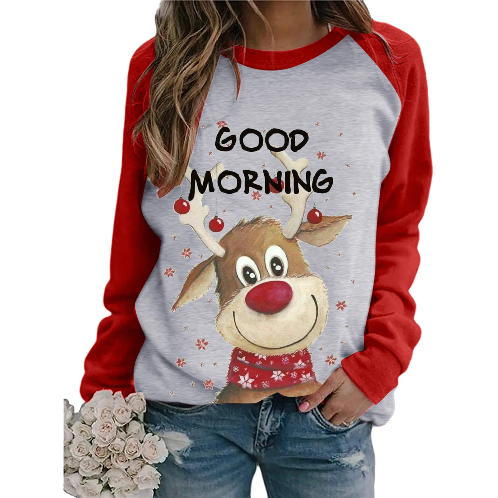 40 # Женские топы размера плюс, блузка Сексуальная Повседневная с рождественским принтом, реглан с длинным рукавом, футболки блузки, блузы Elegantes De Mujer