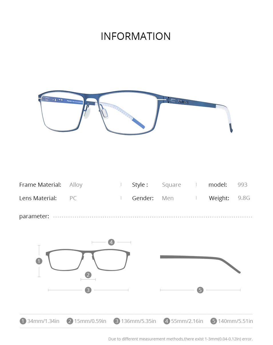 FONEX Мужские и женские Безвинтовые очки по рецепту от близорукости