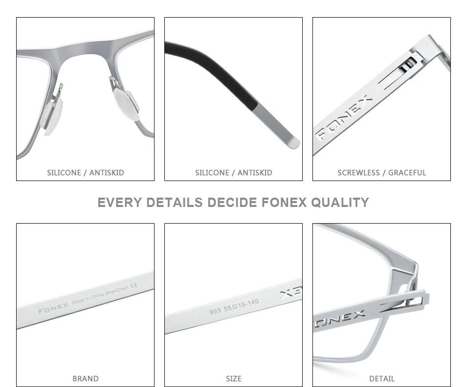 FONEX Мужские и женские очки без винтов, титановые ультралегкие ква...