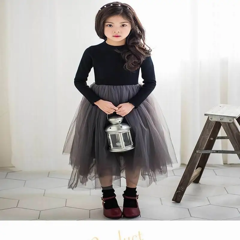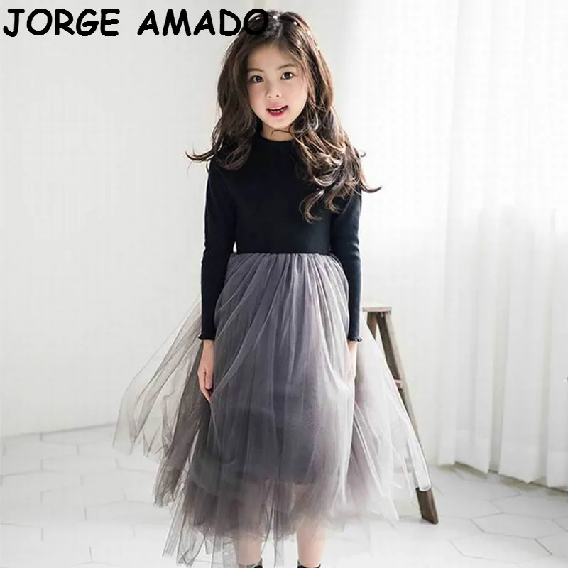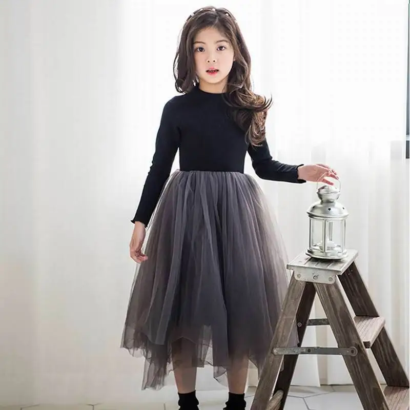 Осень 2020, новое осеннее платье для девочек, осеннее платье, черное, серое, мягкое фатиновое платье для девочек, детская одежда E1926
