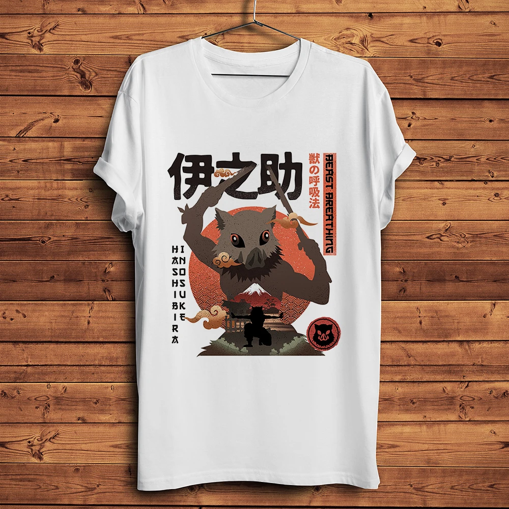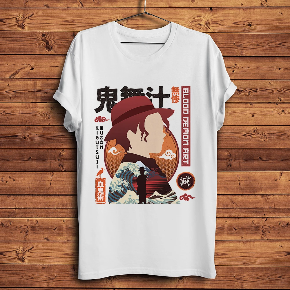 Забавная белая мужская футболка Ukiyoe, стиль Demon Slayer Kamado T...
