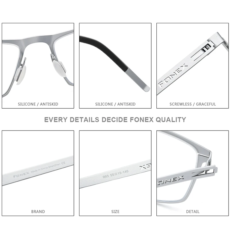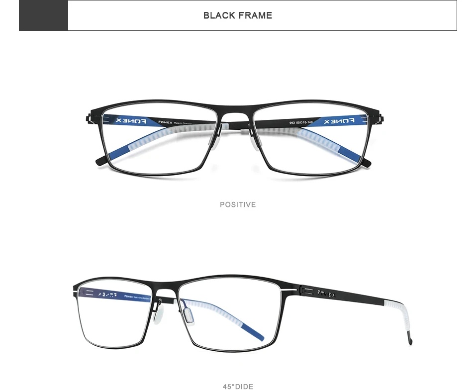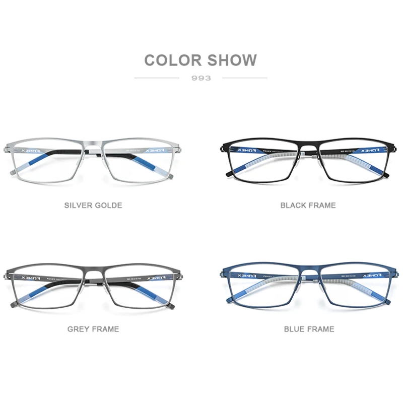 FONEX Мужские квадратные очки для близорукости, без винтов, из сплава