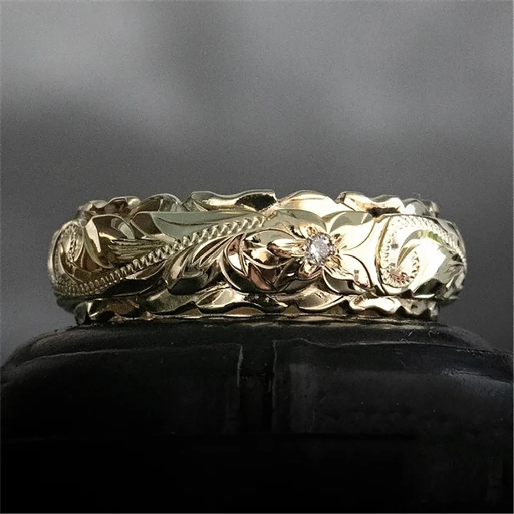 Изысканные резные кольца золотого цвета с цветком, Классические Сва...