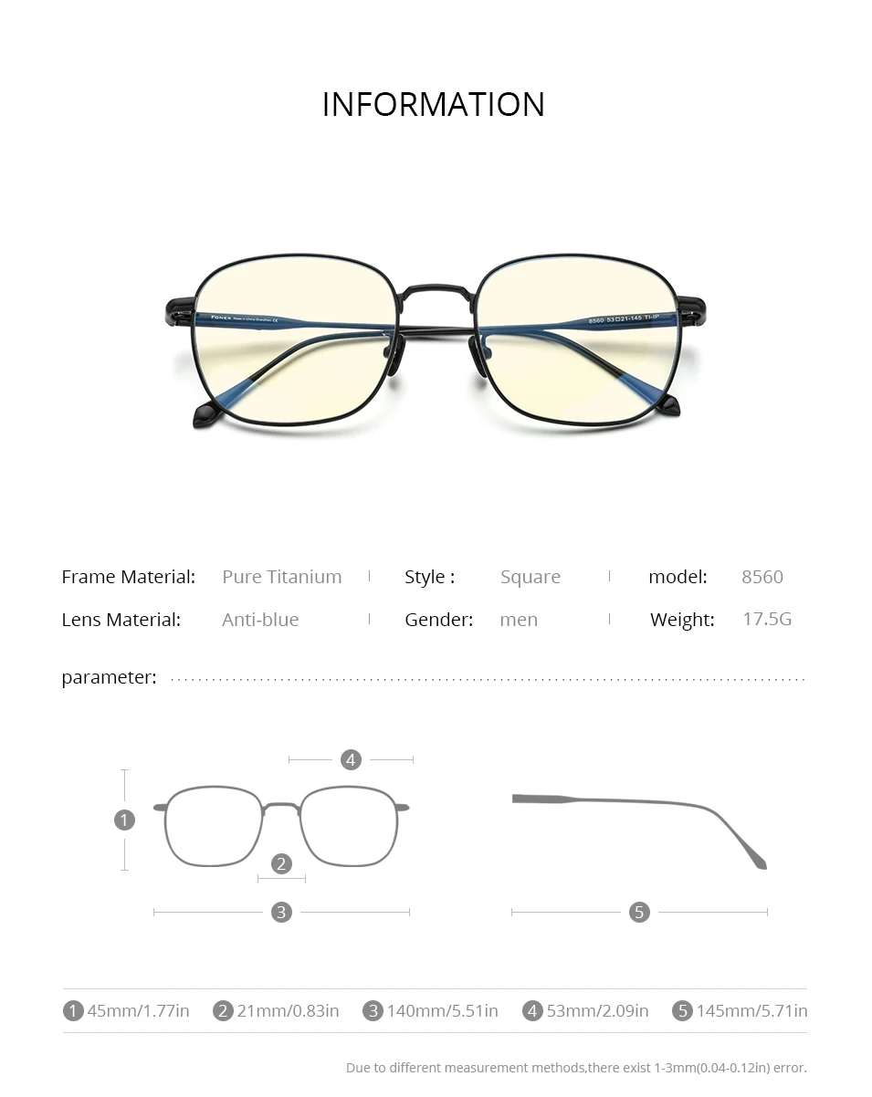 FONEX Мужские и женские очки для коррекции зрения в титановой оправе