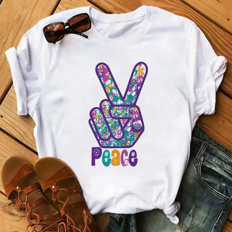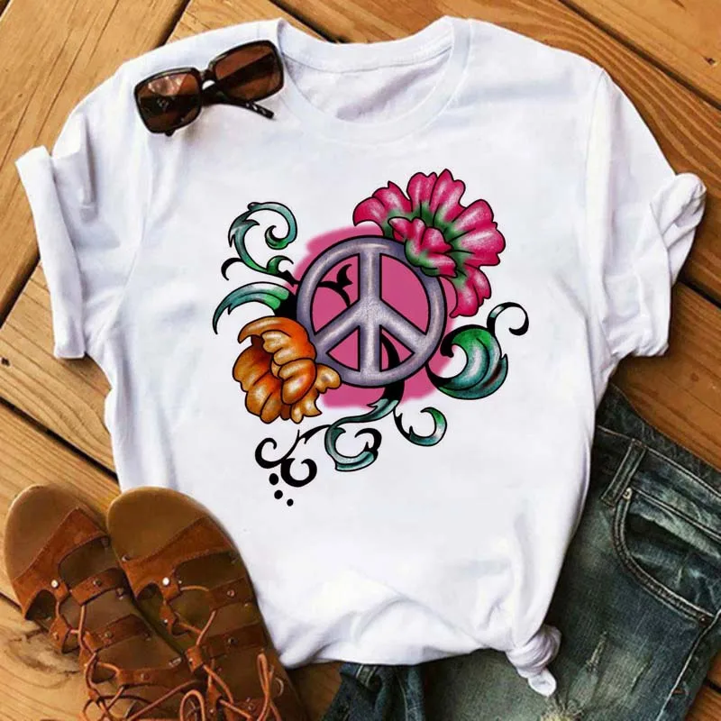 Майка Maycaur Peace Love Женская, Повседневная рубашка с коротким рукавом, топ для отдыха, женская одежда