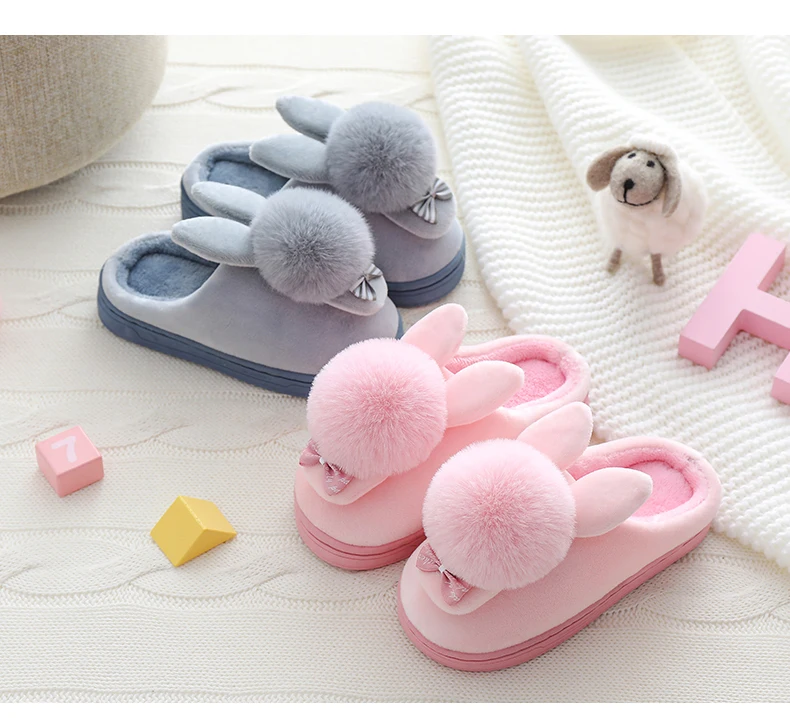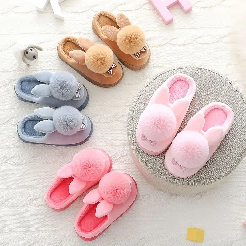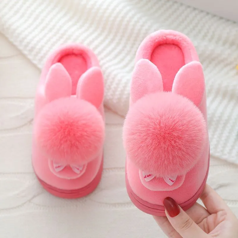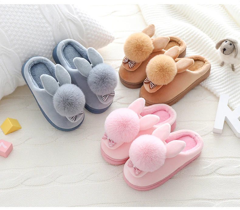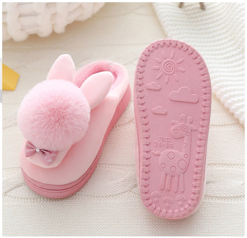 Зимние детские тапочки для девочек и мальчиков; Домашние тапочки с рисунком кролика; Теплая Домашняя обувь; Детская обувь; Плюшевые тапочки с бантом для девочек