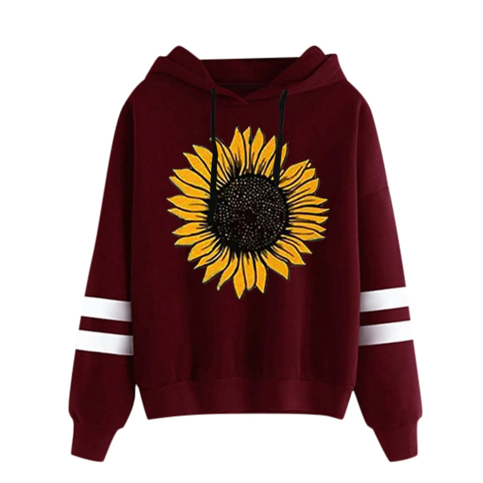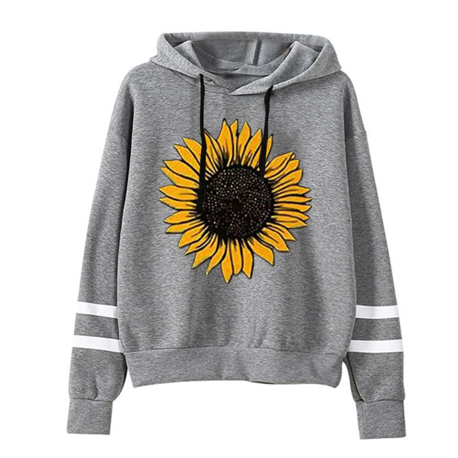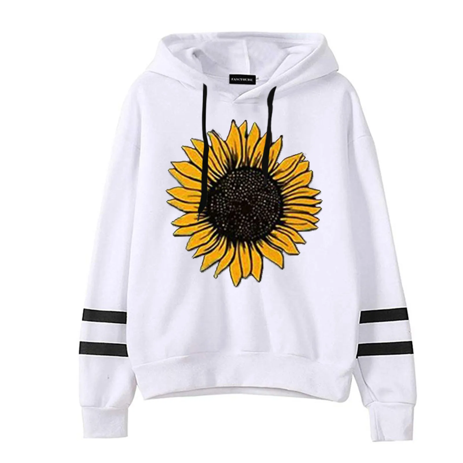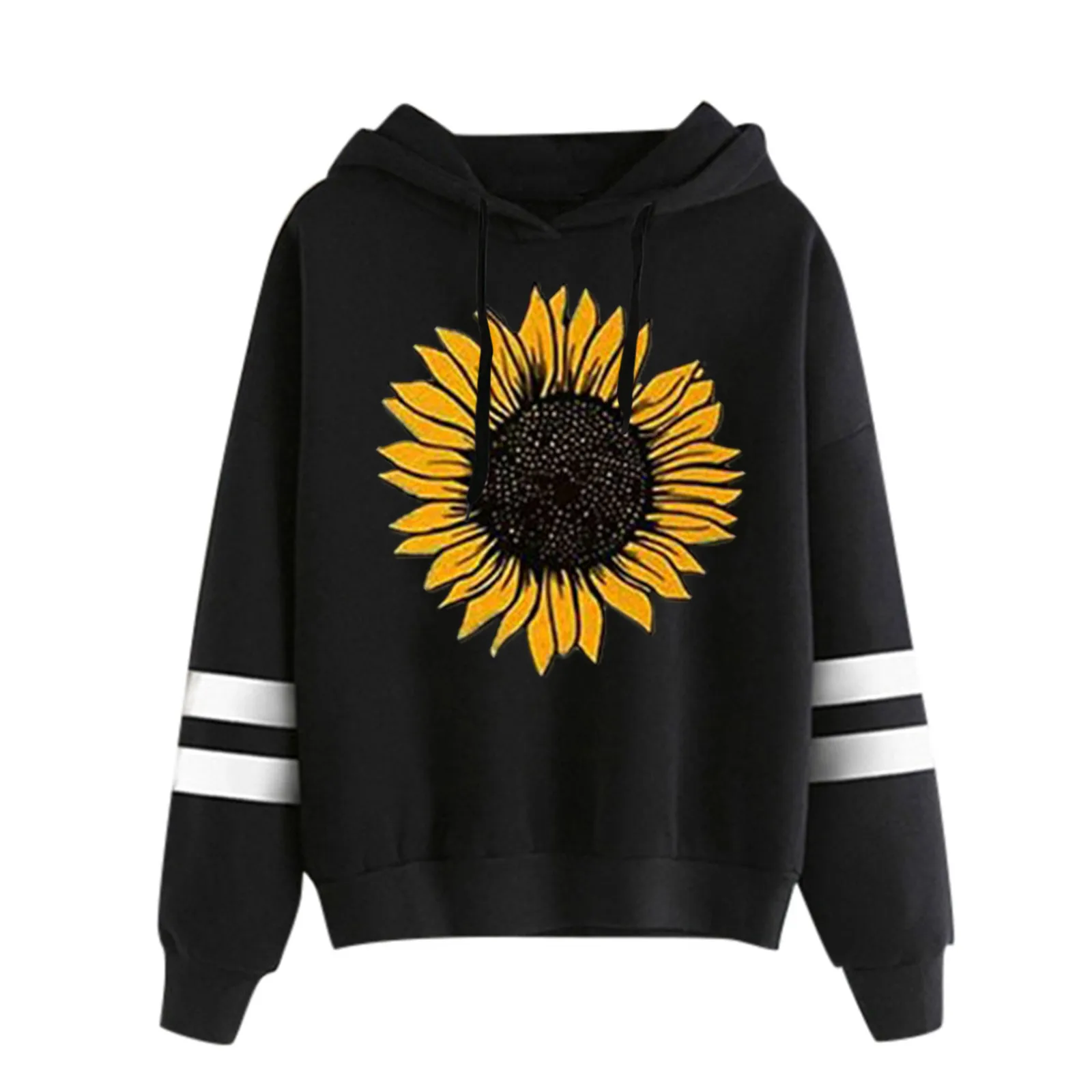 40 # Женская толстовка с принтом подсолнуха, полосатая толстовка с завязками и длинными рукавами Harajuku размера плюс на осень и зиму, Толстые Теплые Топы