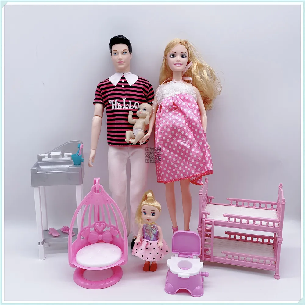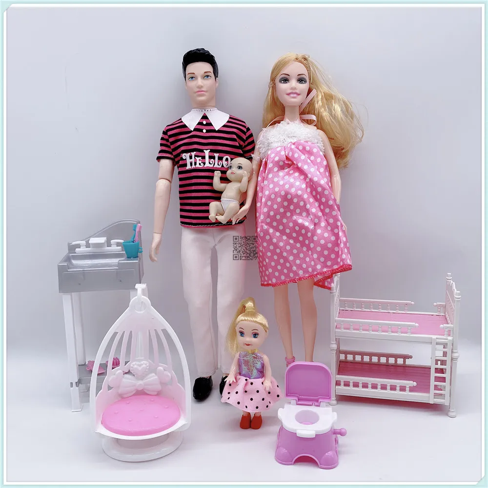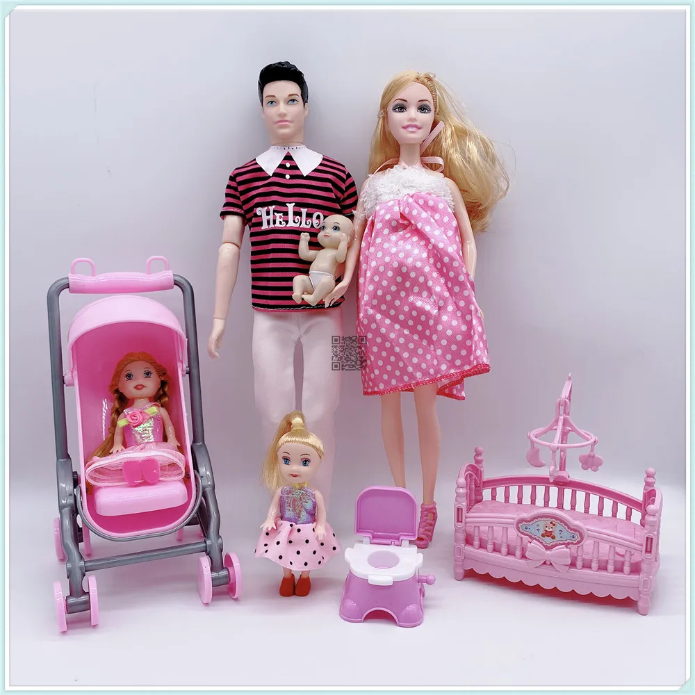 Семейная кукла на 5 человек = 11,5 дюйма, кукла для отца, беременной матери, детской коляски, детская игрушка, лучший подарок на день рождения