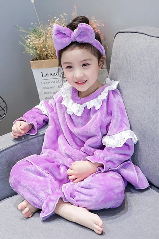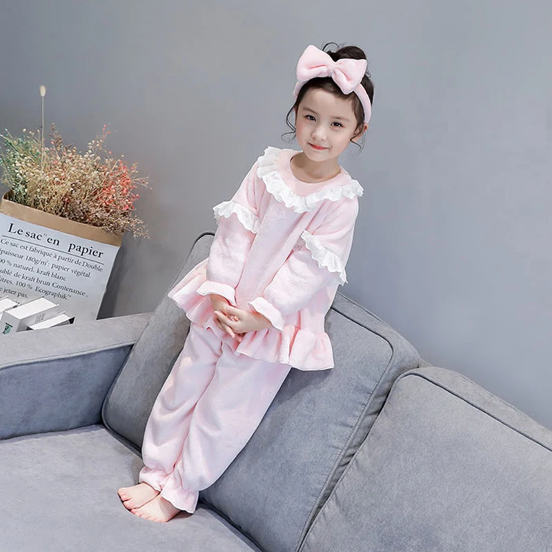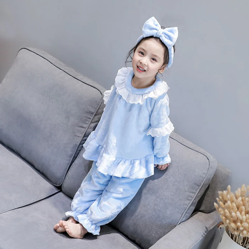 Зимние теплые флисовые пижамы для девочек От 2 до 6 лет, детские пижамы из 3 предметов для детей, включая повязку на голову + рубашку + брюки
