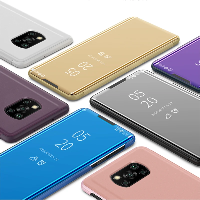 Умный зеркальный флип-чехол для Xiaomi Poco X3 NFC Mi Note 10 9 SE A3 Lite F2 M2 Pro Redmi Note 9s 9 8 Pro 8T 9 9A 8 8A, задняя крышка