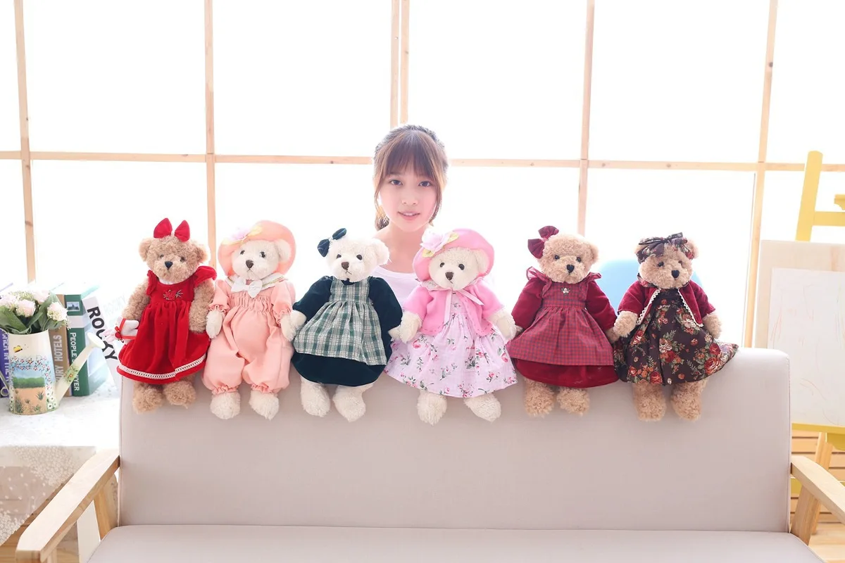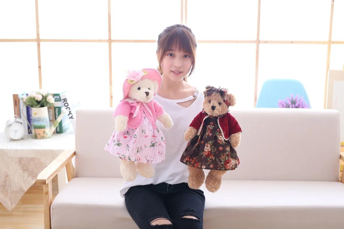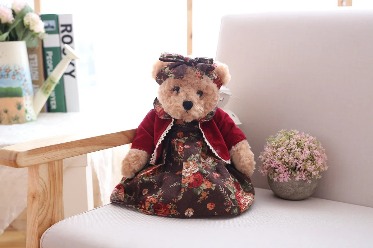 1 шт. 40 см винтажный плюшевый мишка с цветочным платьем мягкие животные плюшевые игрушки куклы Рождественские подарки на день рождения для детей