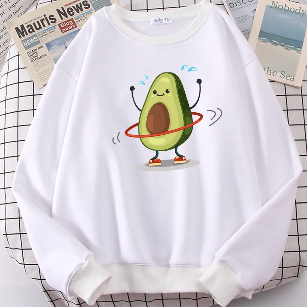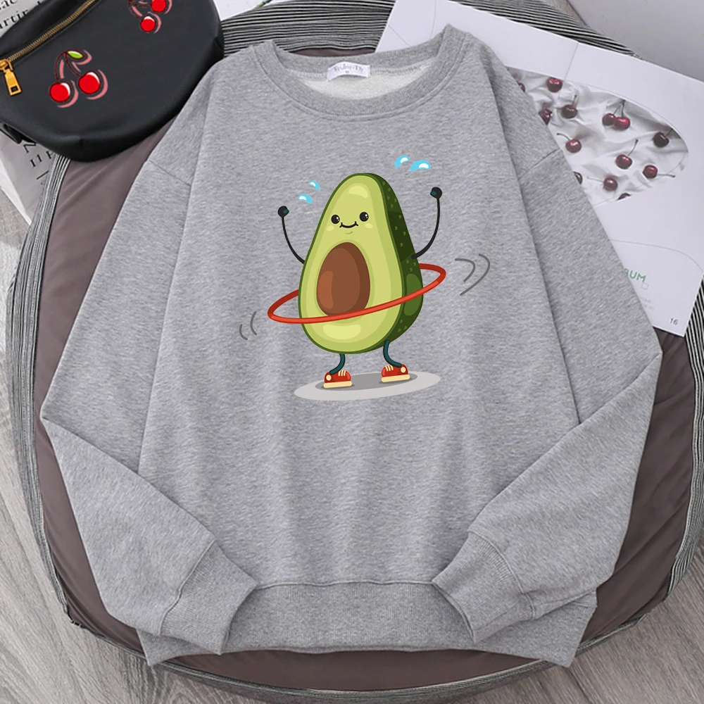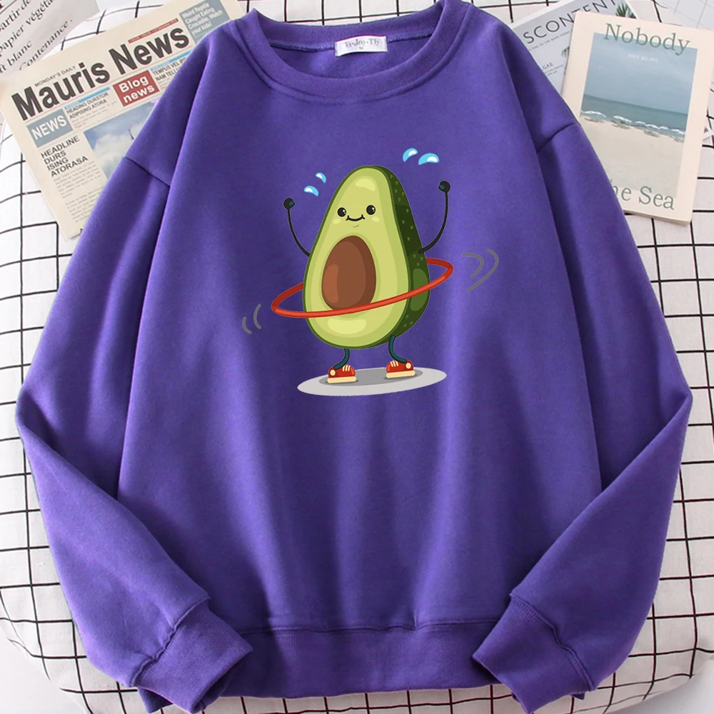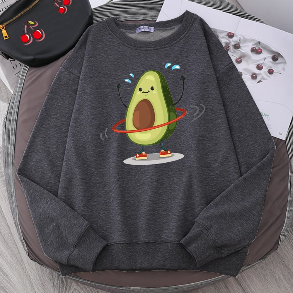 Теплая Женская толстовка с круглым вырезом и принтом авокадо из мультфильма; Милая флисовая одежда больших размеров; Забавные женские толстовки с капюшоном; Пуловер для женщин