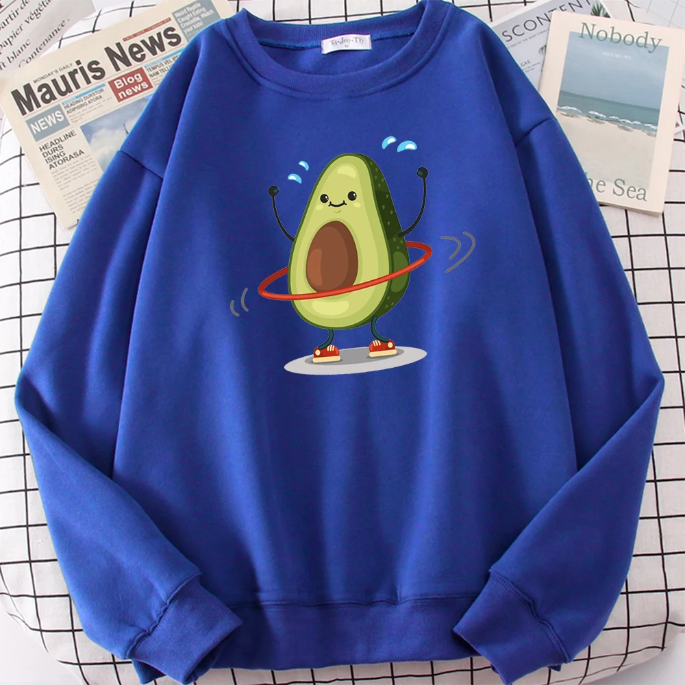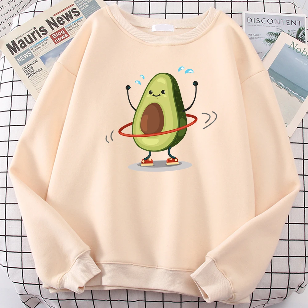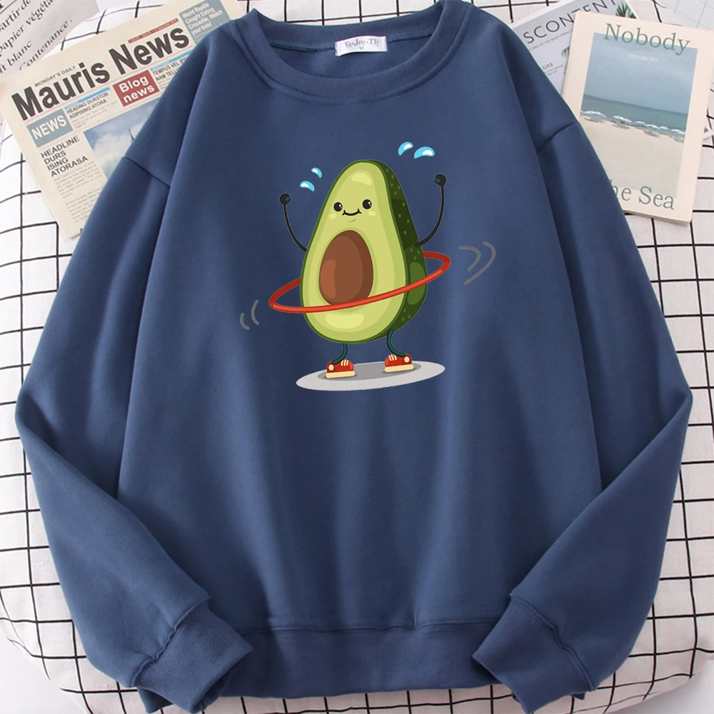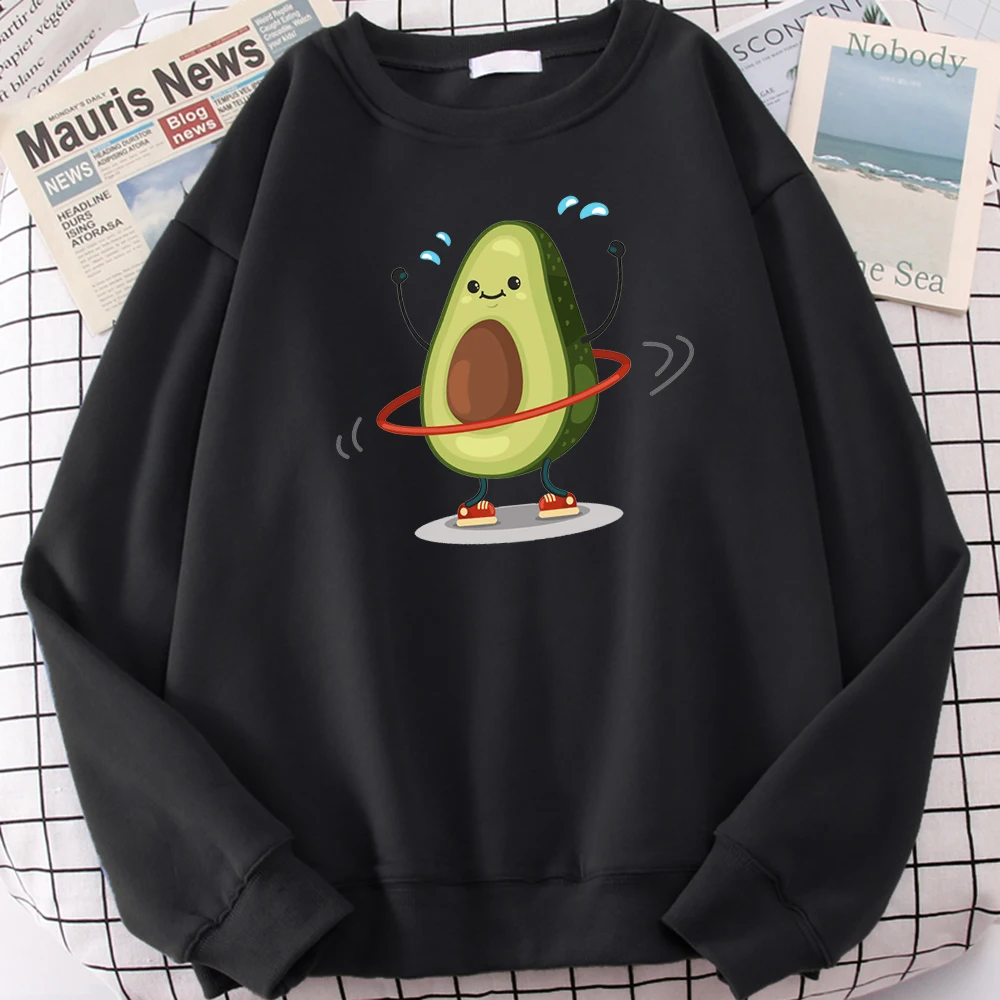 Теплая Женская толстовка с круглым вырезом и принтом авокадо из мультфильма; Милая флисовая одежда больших размеров; Забавные женские толстовки с капюшоном; Пуловер для женщин