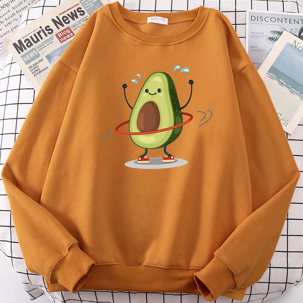 Теплый женский милый свитер с круглым вырезом и принтом авокадо с рисунком авокадо, женская флисовая одежда больших размеров, забавные толстовки с капюшоном, пуловер для женщин