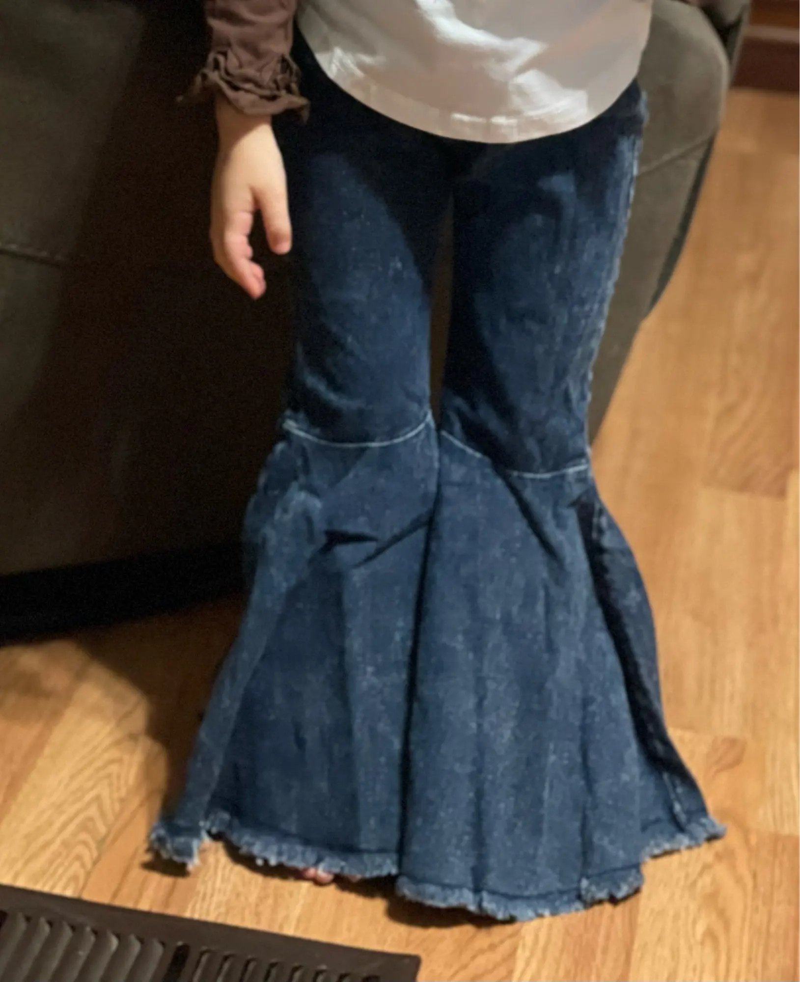 Расклешенные джинсы для маленьких девочек синие джинсовые штаны с завышенной талией и расклешенным низом весенне-осенняя одежда для детей 2-7 лет