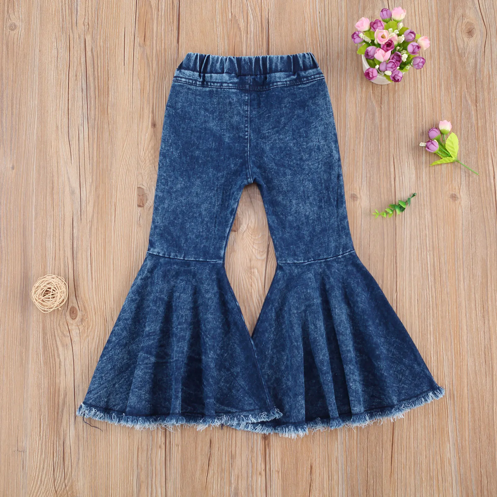 Новая модная одежда для малышей девочек расклешенные джинсы синего ...