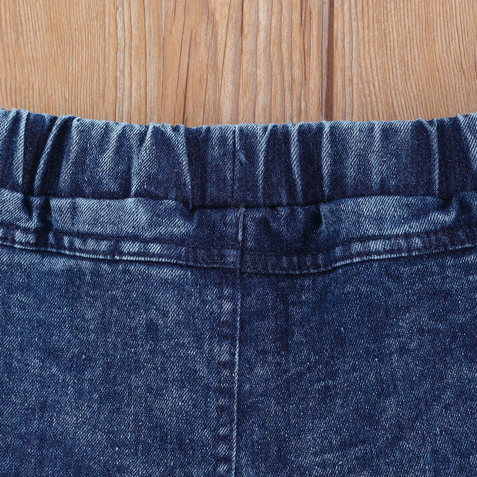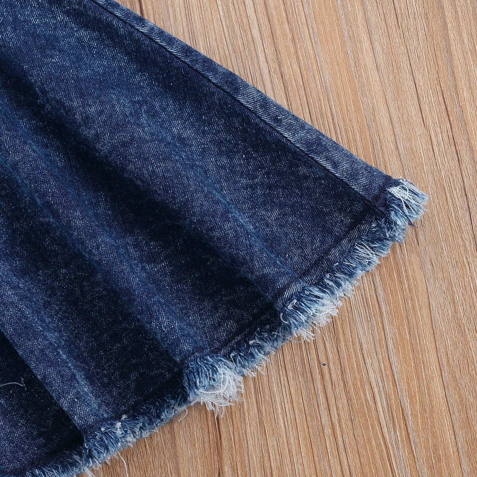 Джинсы-клеш для маленьких девочек, базовые синие джинсовые брюки с высокой талией и поясом-колокольчиком, одежда на весну и осень для детей 2-7 лет