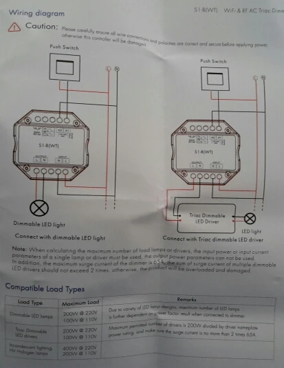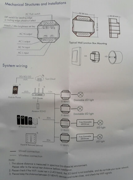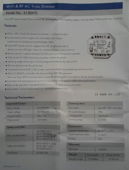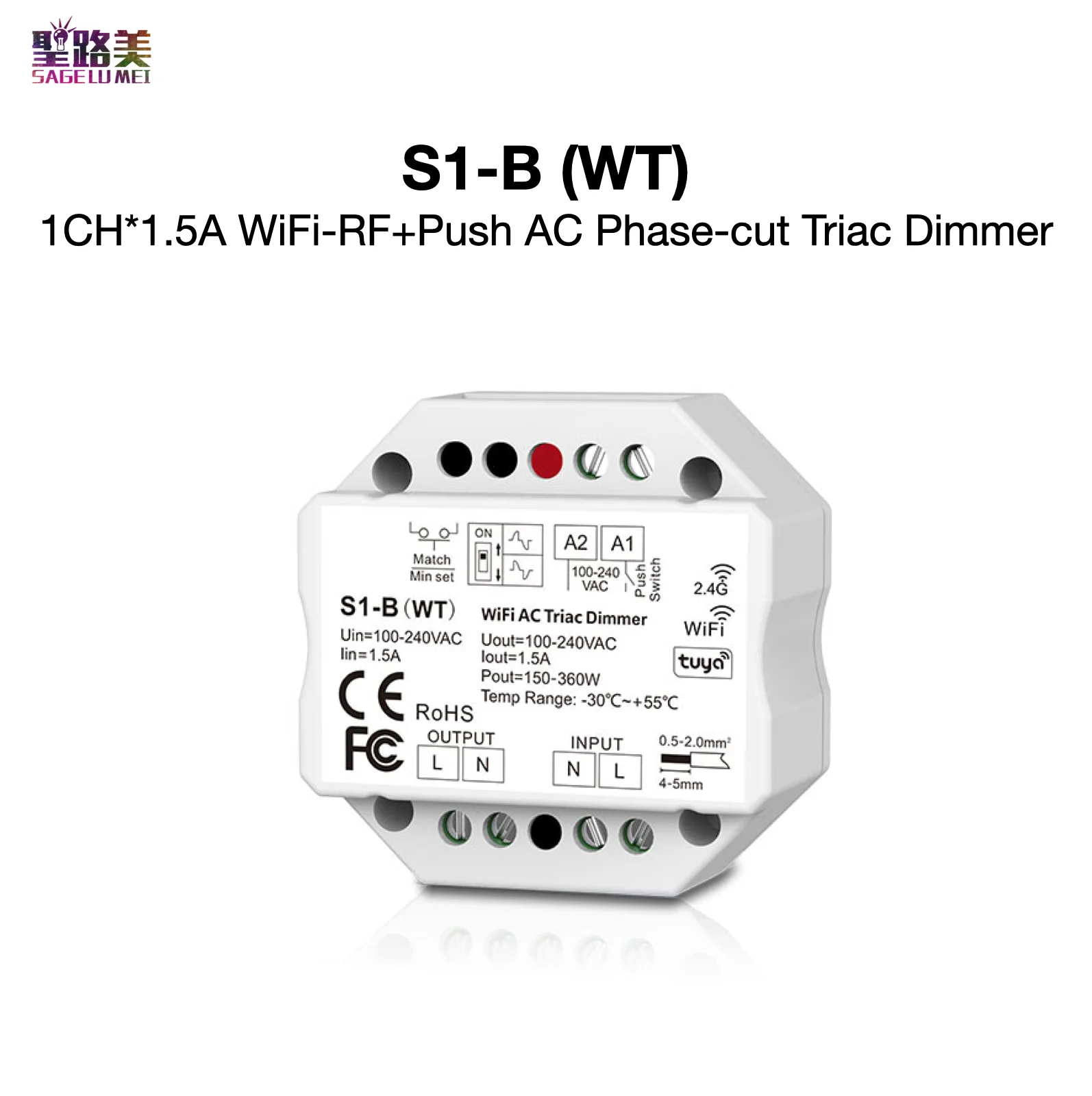 S1-B (WT) 1CH * 1.5A WiFi-RF + Push AC фазовый-cut Triac Dimmer Tuya APP Облачное управлениеГолосовое управление SkyDance
