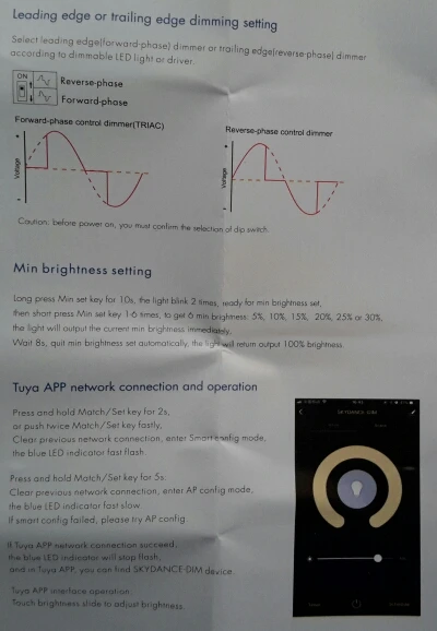 Продукт соответствует описанию. Преимущество этого продукта является его многократным интересом с различными заказами: в Wi-Fi с Smart Life , Tuya , Xiaodu (DuerOS) , Tmall Genie (aligenia), alexa или Google Home или Rf с беспроводным пультом дистанционного управления стены или мобильным телефоном. Функция запуска оставляет желать лучшего, а также Управление интенсивностью освещения может быть заказано голосом через Google Home. Есть также функция программирования времени через Smart Life. Получил быстро за 8 дней