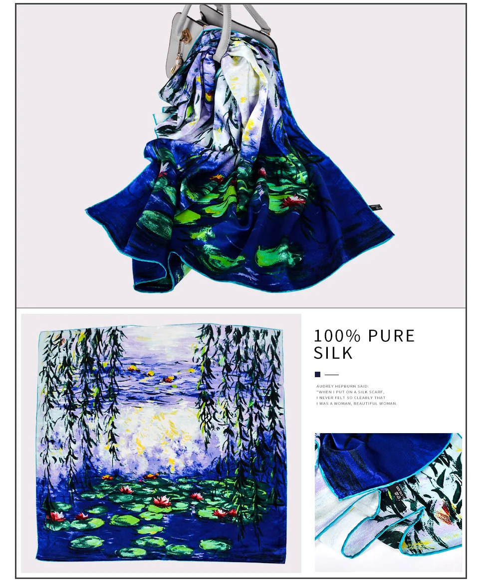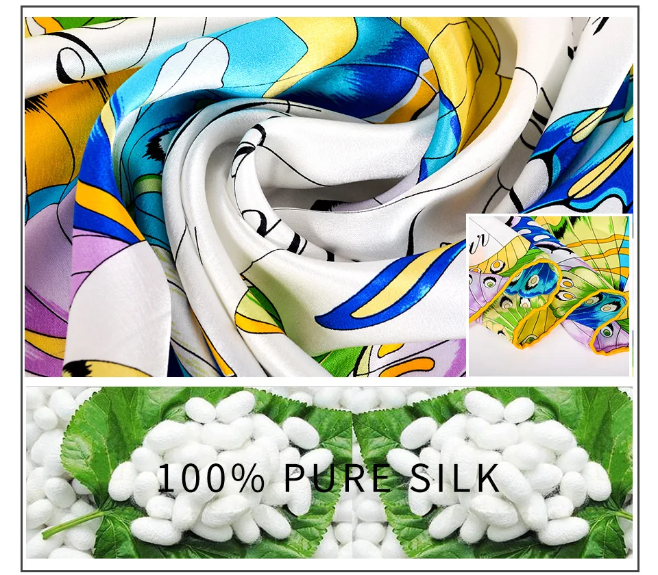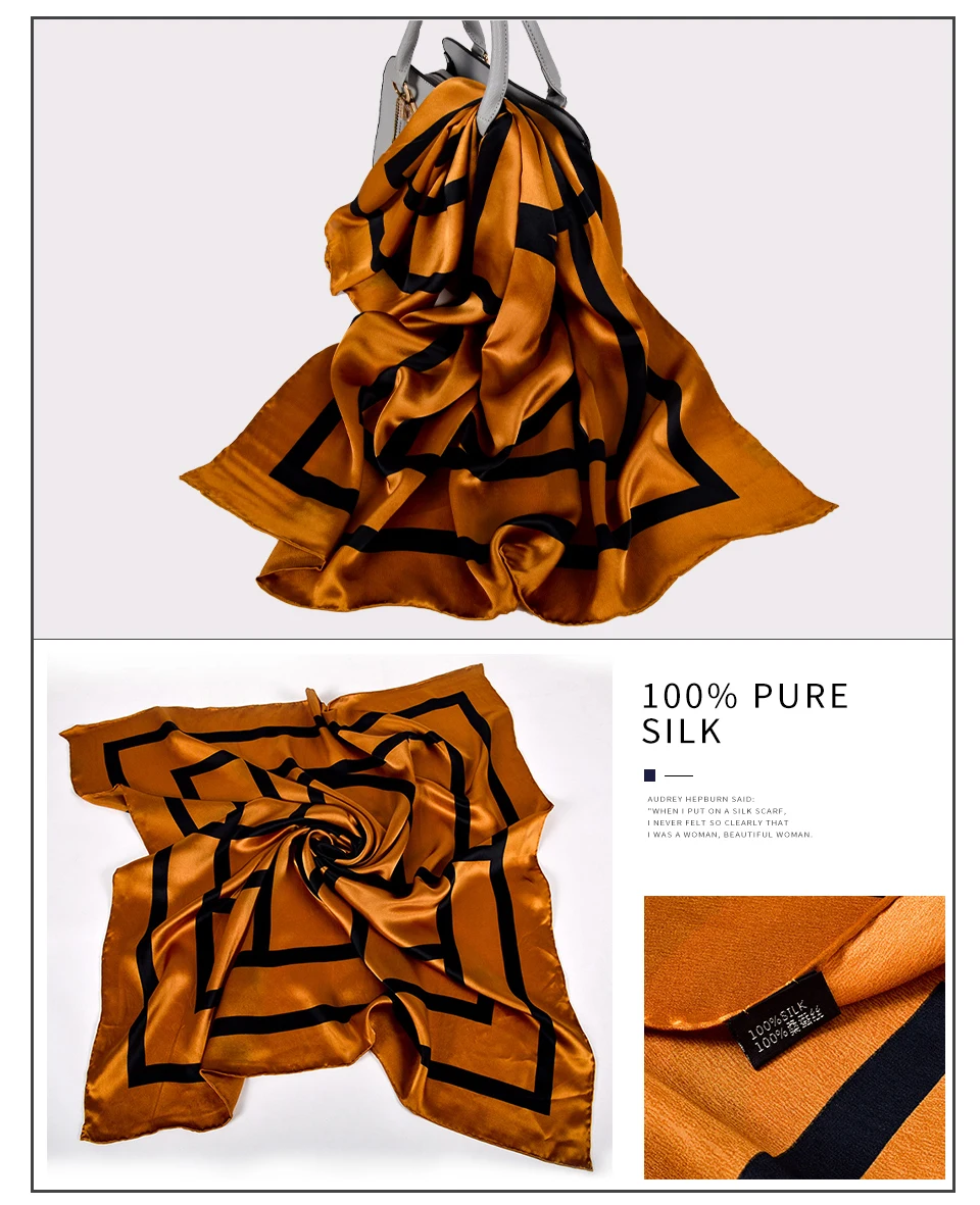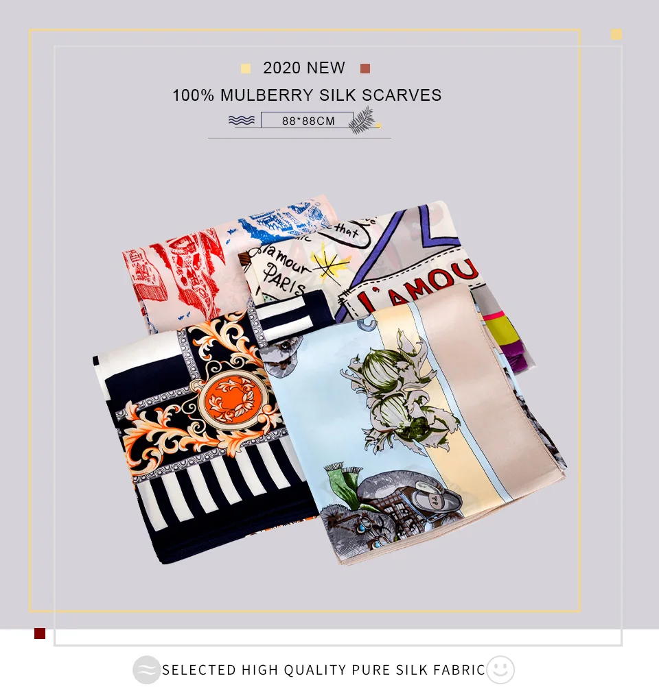 Шарф BYSIFA женский квадратный из натурального шелка, яркий мусульманский хиджаб с принтом кота и рыбы, Осень-Зима 100%, 90*90 см