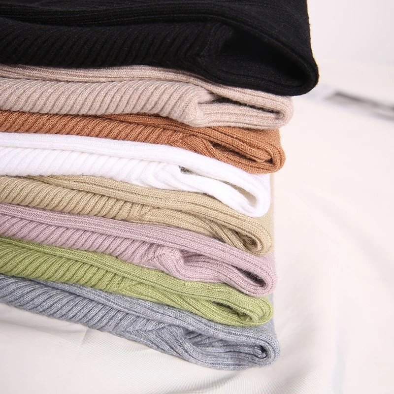 Женский трикотажный свитер с высоким воротником, эластичный однотон...