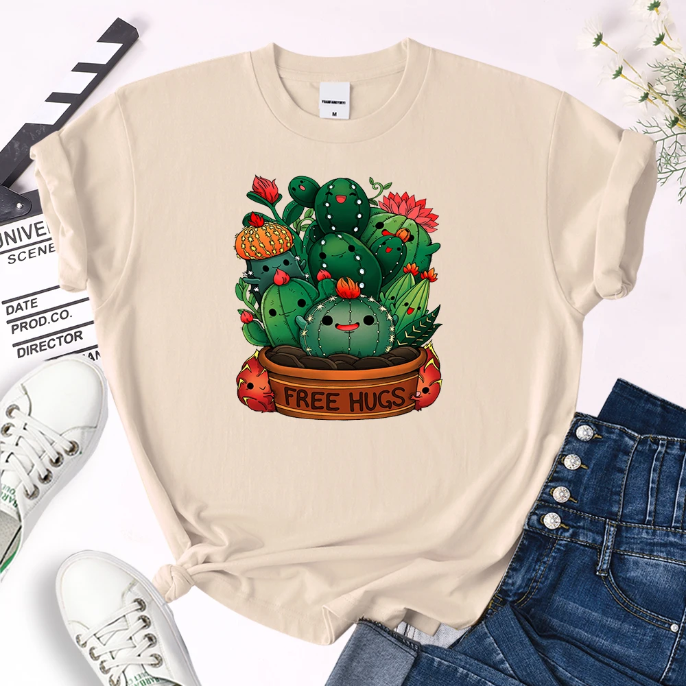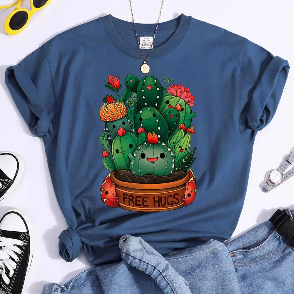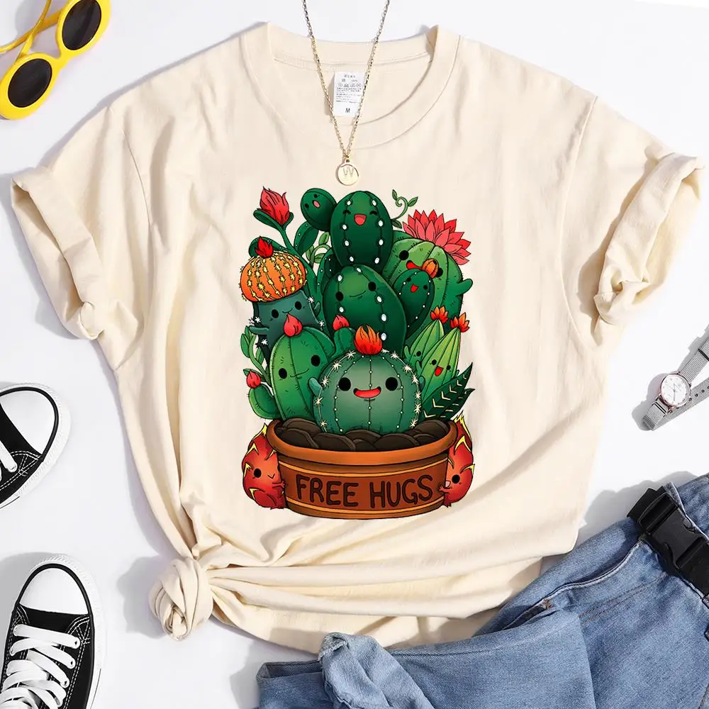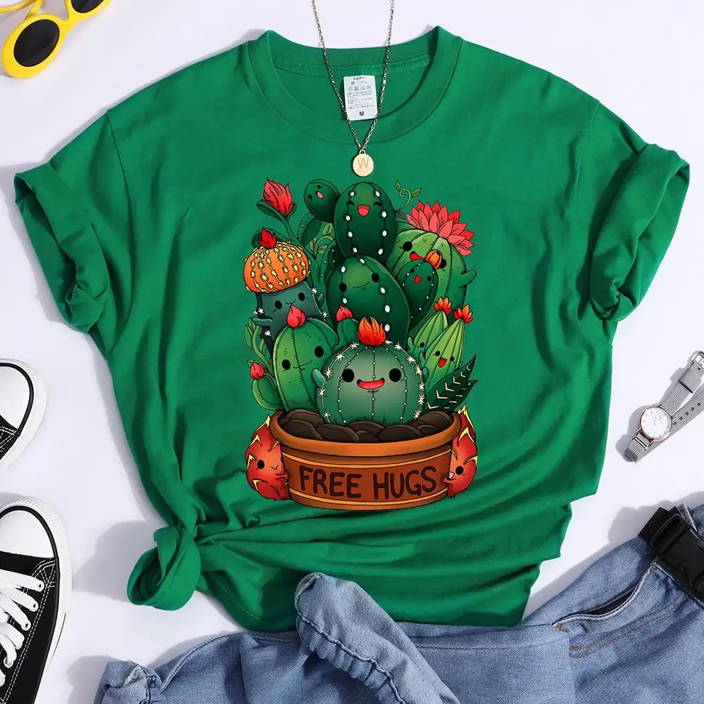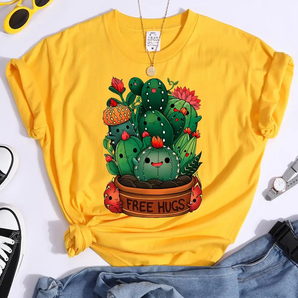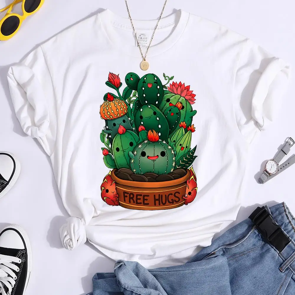 Женские футболки с забавным цветочным принтом и принтом кактуса, модная одежда в стиле панк, хлопковые винтажные футболки для женщин