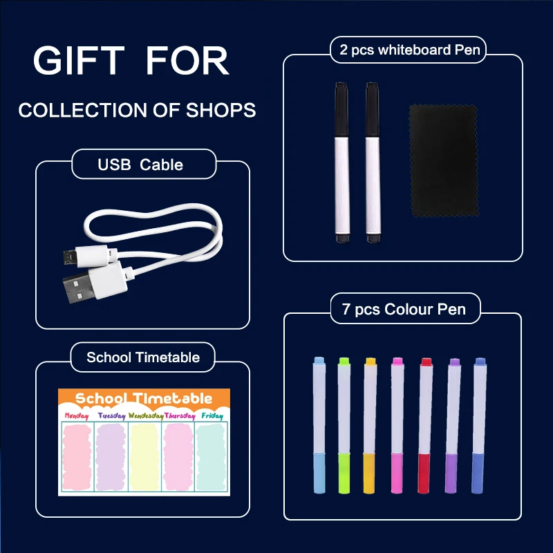 Посылка 1 чехол для карандашей 1 х USB кабель 9 стираемых ручек для белой доски 1 х стеклоочиститель Расписание занятий-1 шт. (За исключением других украшений)