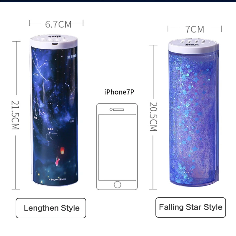Длина в стиле en: диаметр 6,7 см X длина 21,5 смСтиль падающей звезды: диаметр 7 см X длина 20,5 см