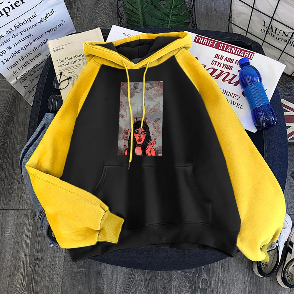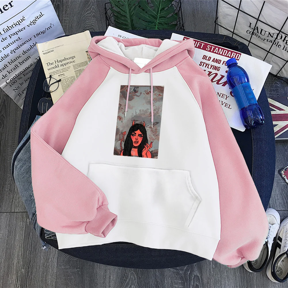 Маленький Дьявол девушка Рисунок женские толстовки и толстовки корейский Harajuku женские пуловеры винтажные свободные реглан балахон 2020 женщин