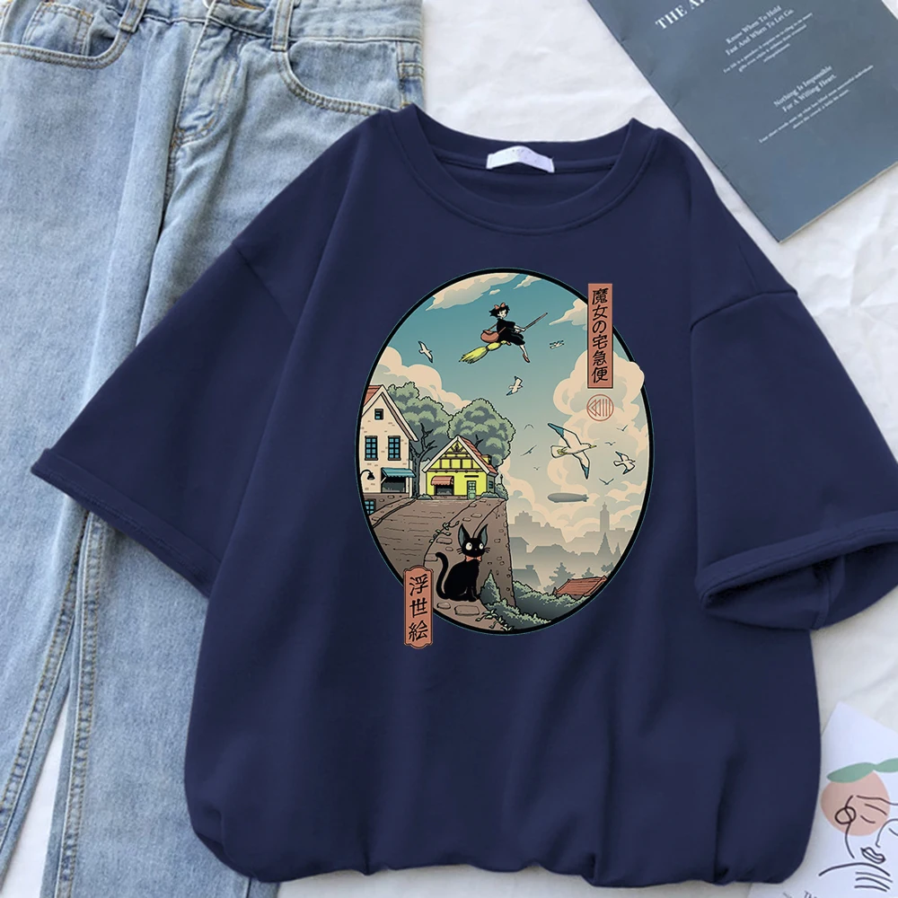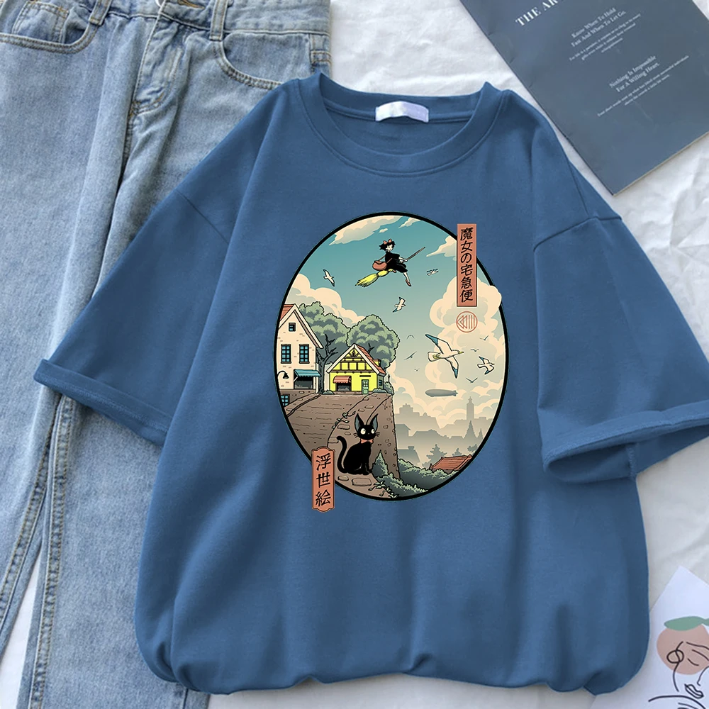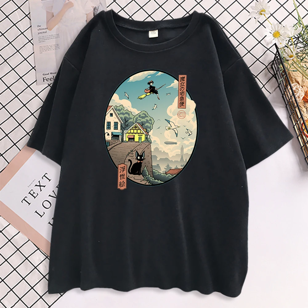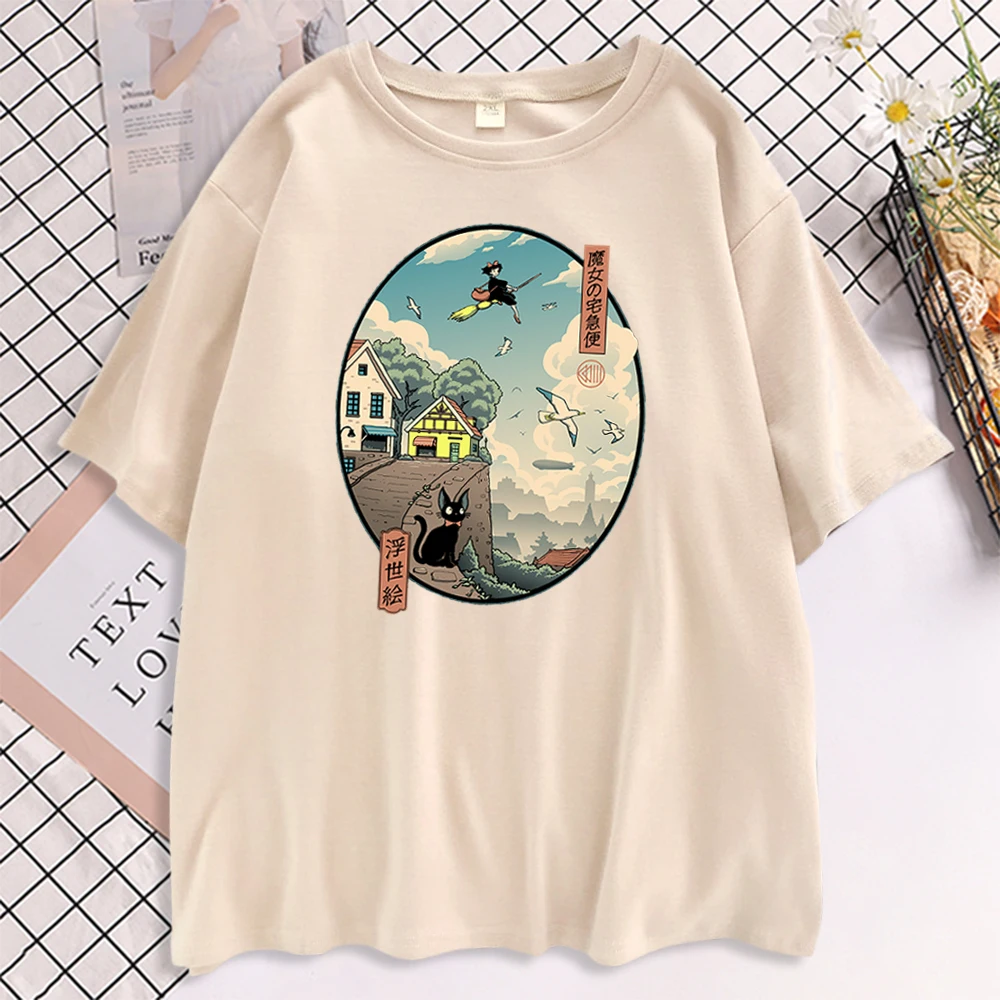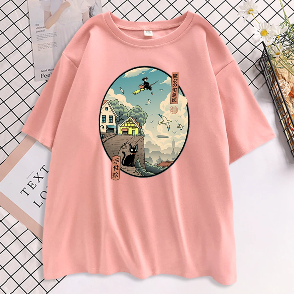 Ukiyoe Kiki Служба доставки Футболки с коротким рукавом с принтом Женские негабаритные корейские футболки Женские повседневные модные футболки для женщин