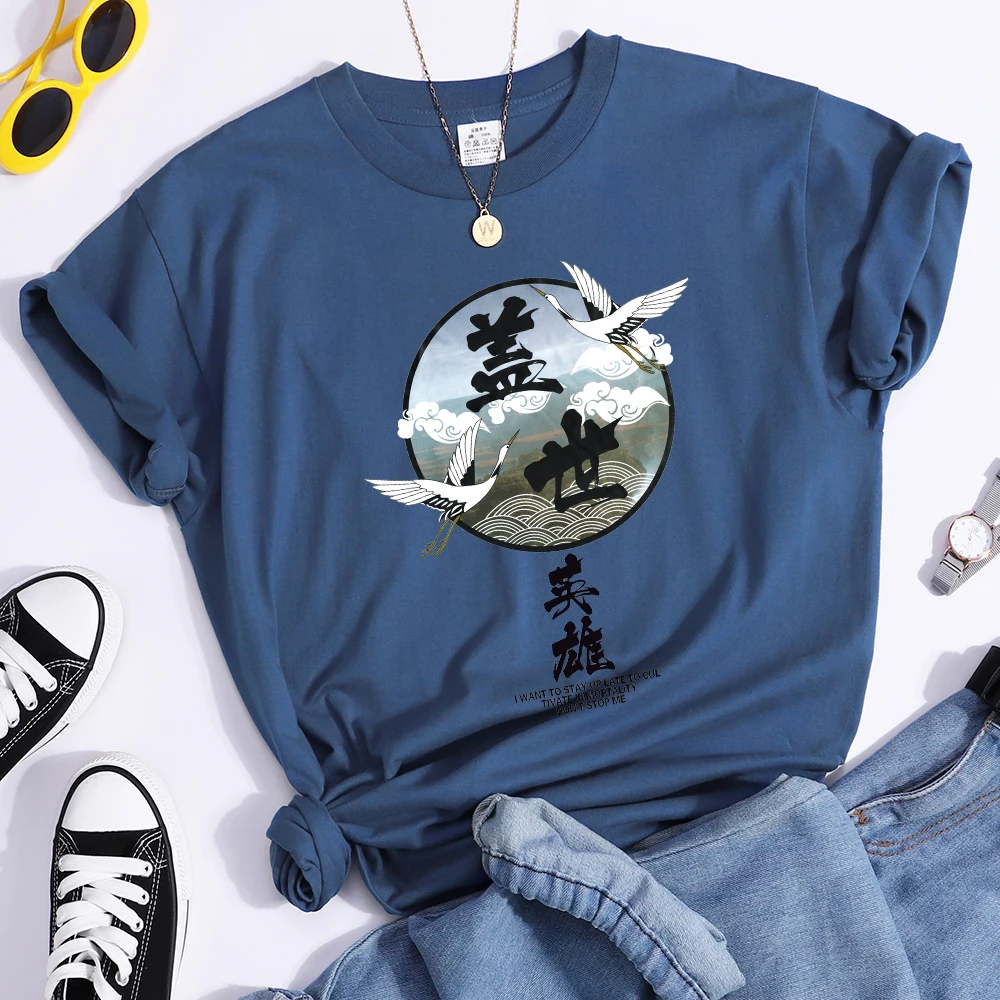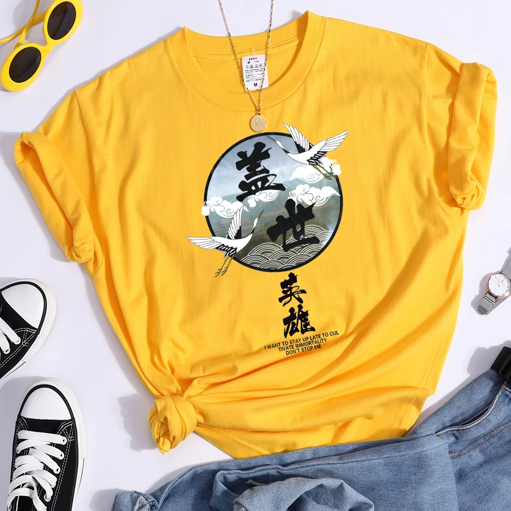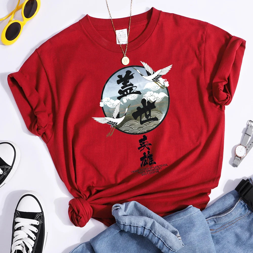 Футболка женская с коротким рукавом, модный брендовый принт красных корон и журавлей, уличная одежда, большие размеры