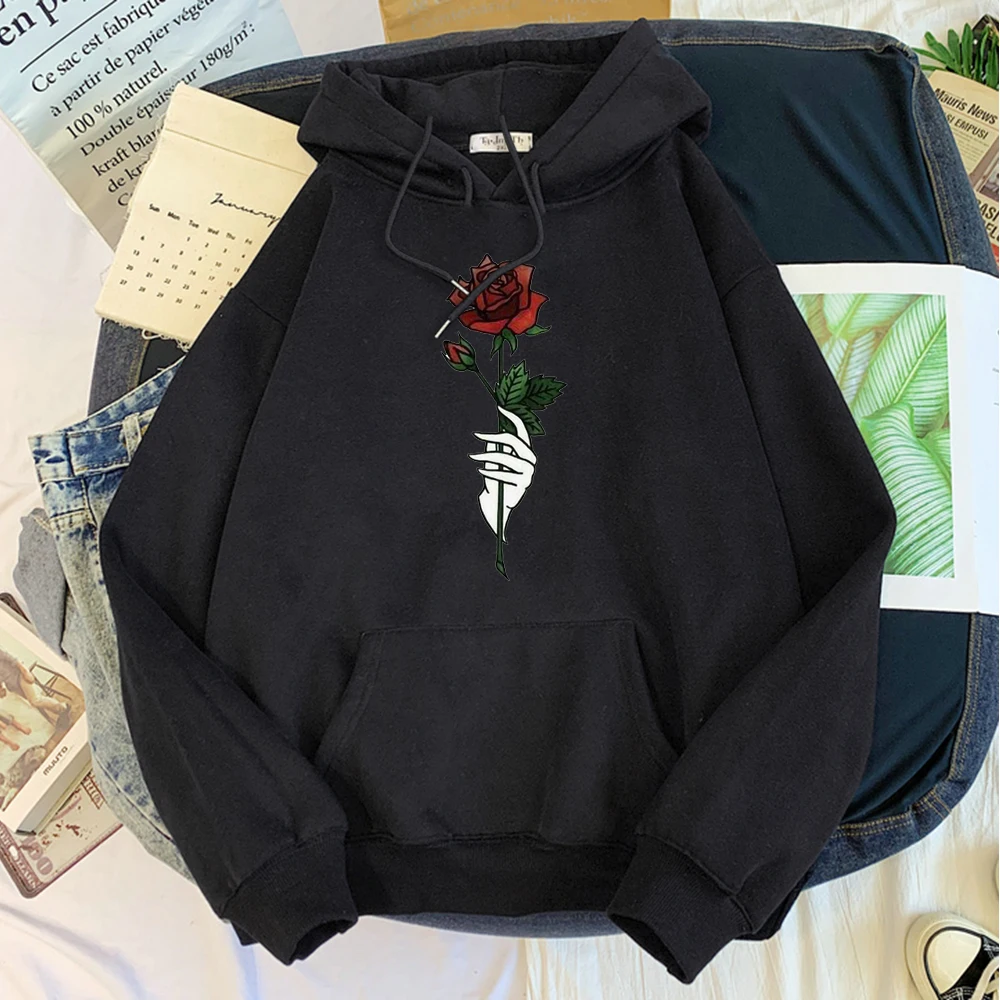 Толстовка с капюшоном с принтом «Роза в руке», модная уличная Толстовка для девочек, Женские флисовые толстовки Harajuku, женские толстовки