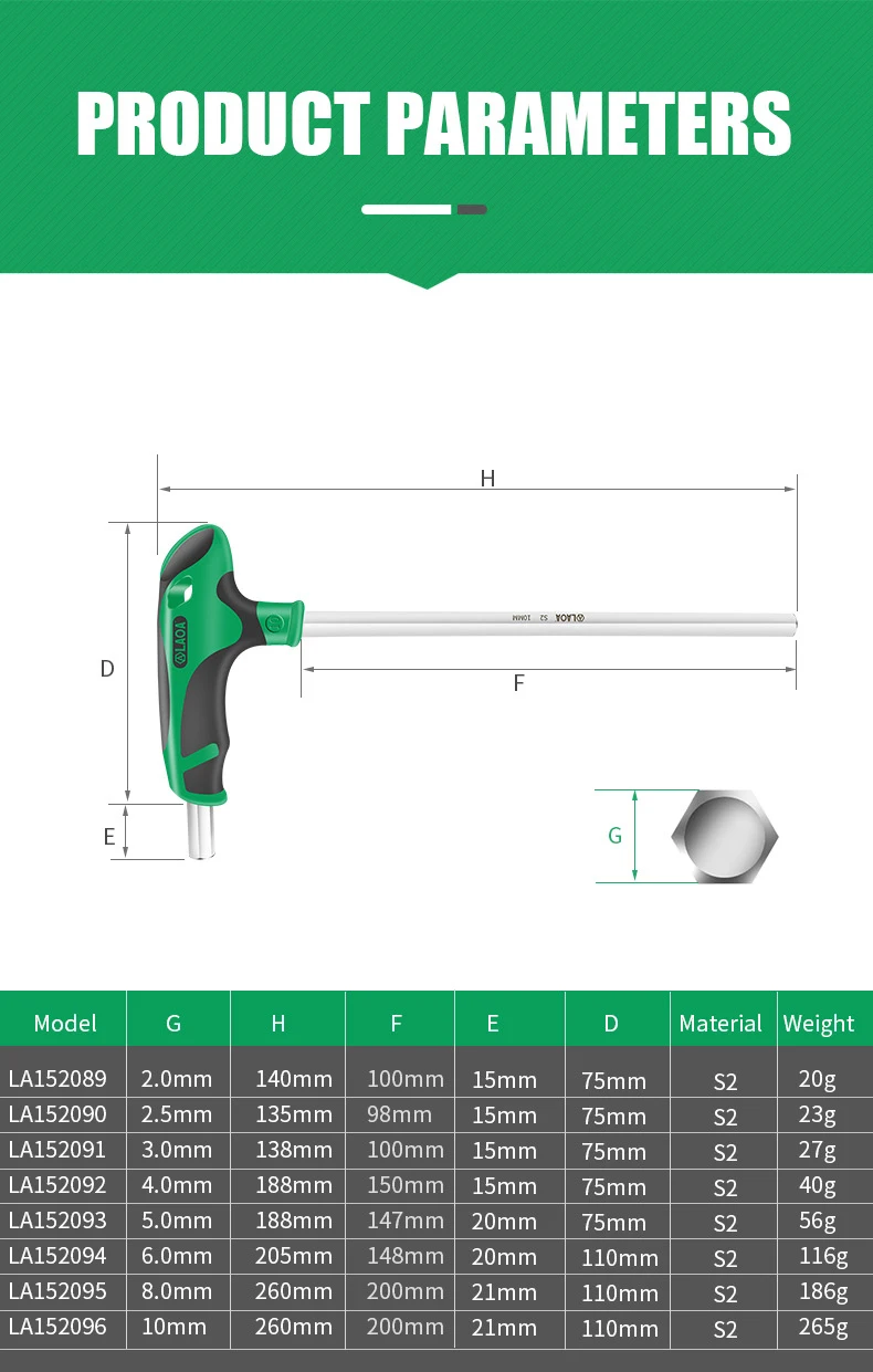 Набор Т-образных плоских шестигранных гаечных ключей LAOA S2, шестигранные отвертки 1223456810 мм, 58HRC, торцевые винты
