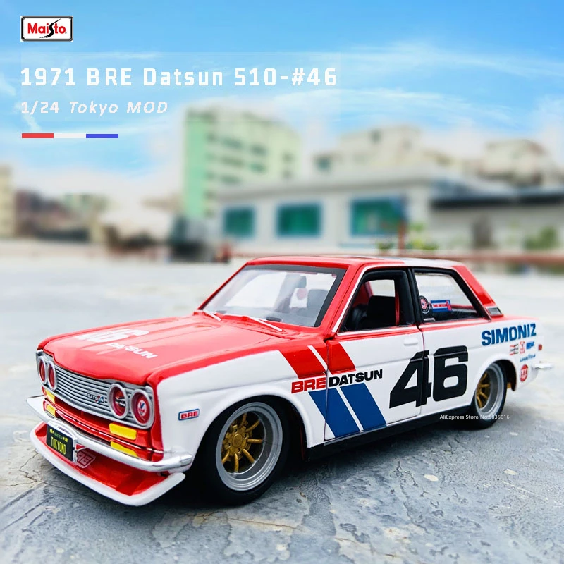 Модель автомобиля Maisto 1:24 Tokyo, модель из сплава Nissan 1971 DATSUN 510 #46, украшение ручной работы, коллекционная игрушка, инструмент, подарок, литье под давлением