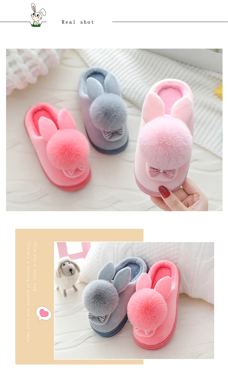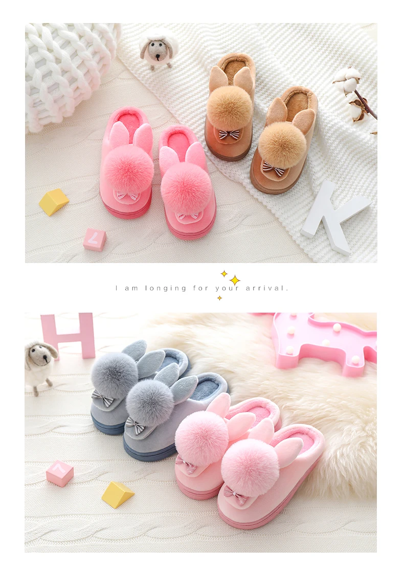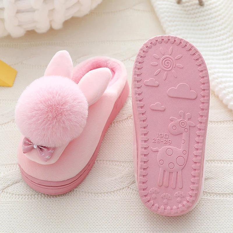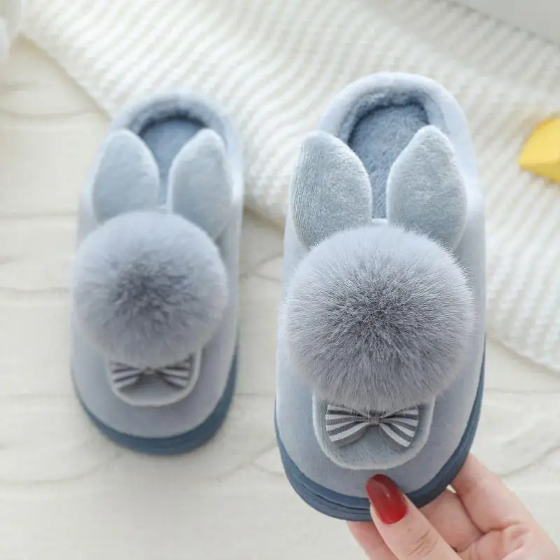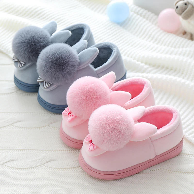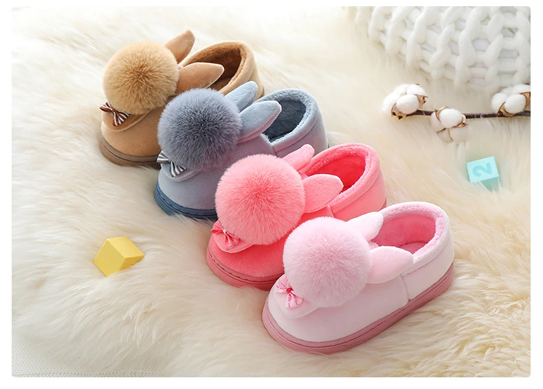 Детские зимние тапочки; Хлопковые домашние тапочки с рисунком кролика для мальчиков; Детская плюшевая домашняя теплая обувь; Тапочки принцессы с бантом для девочек