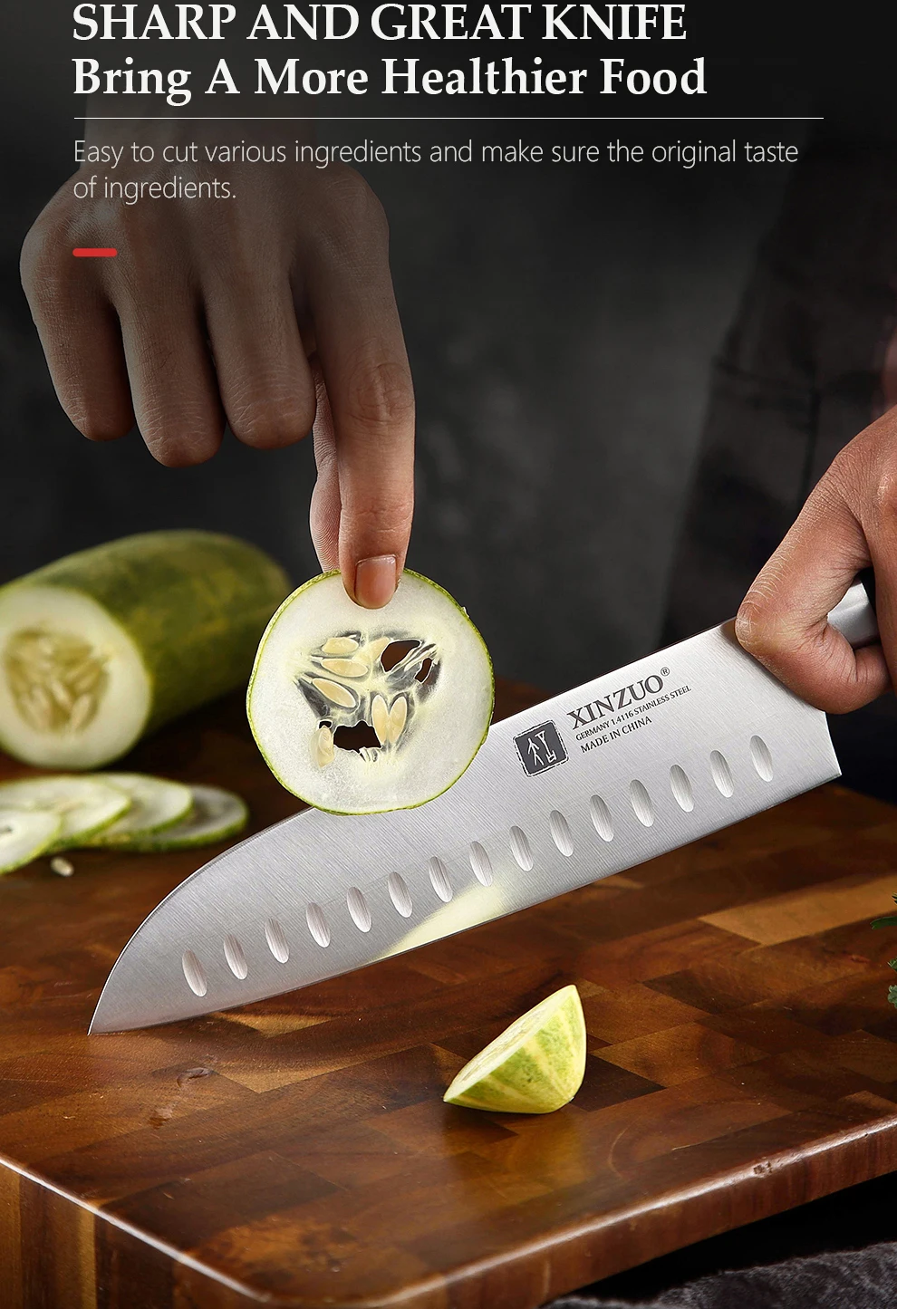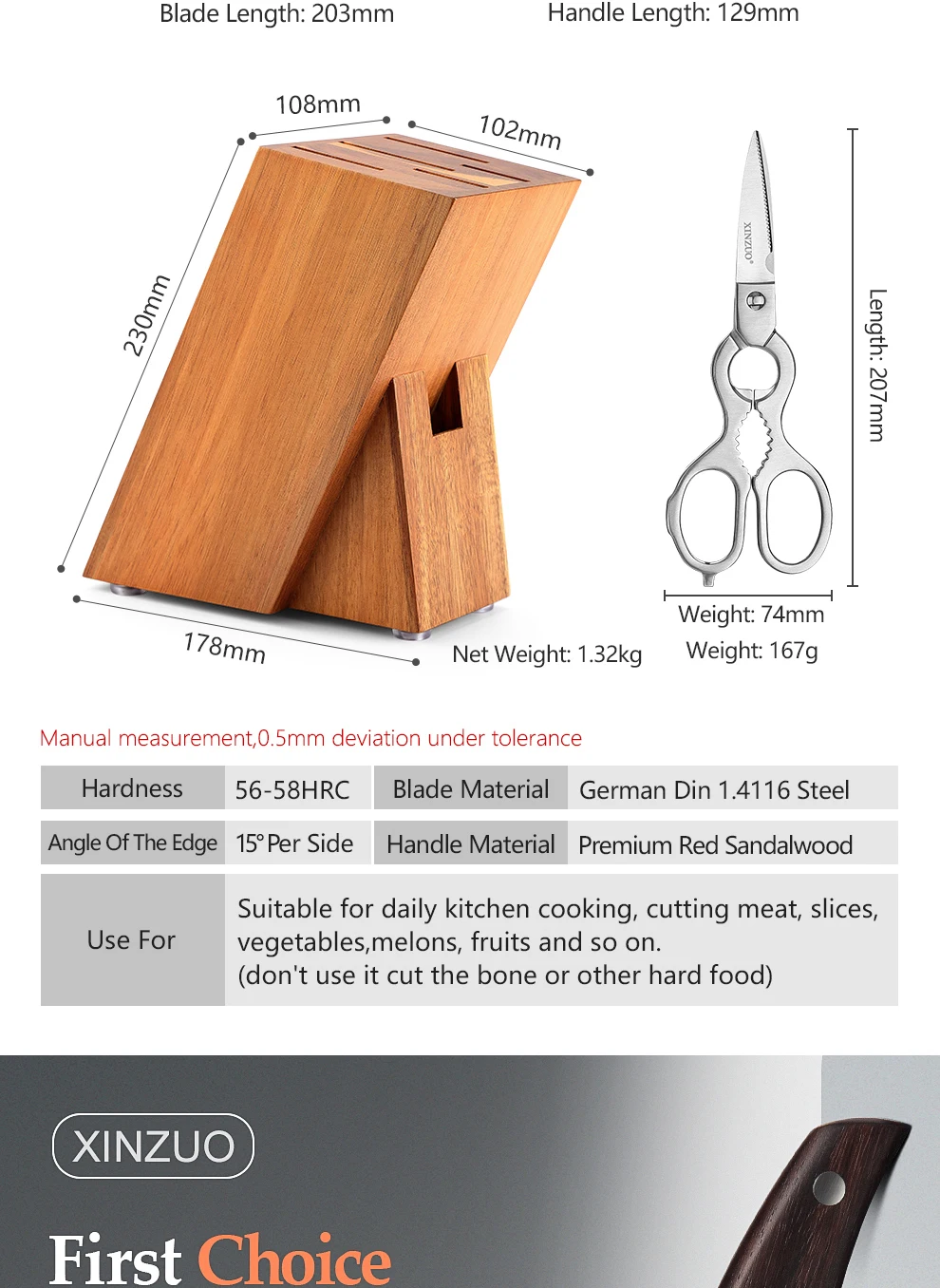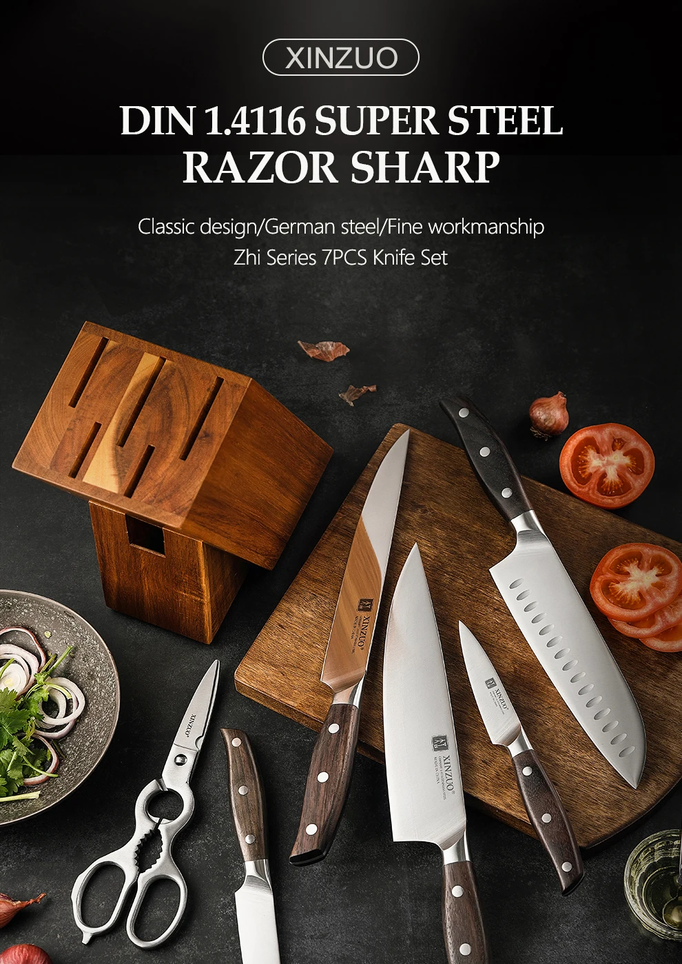Набор ножей XINZUO из 7 предметов, набор ножей с держателем и ножницами из высокоуглеродистой нержавеющей стали, овощной стейк, лучшие кухонные инструменты шеф-повара
