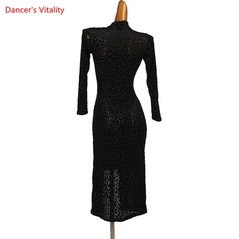 Женское платье для латинских танцев, черное танцевальное платье с д...