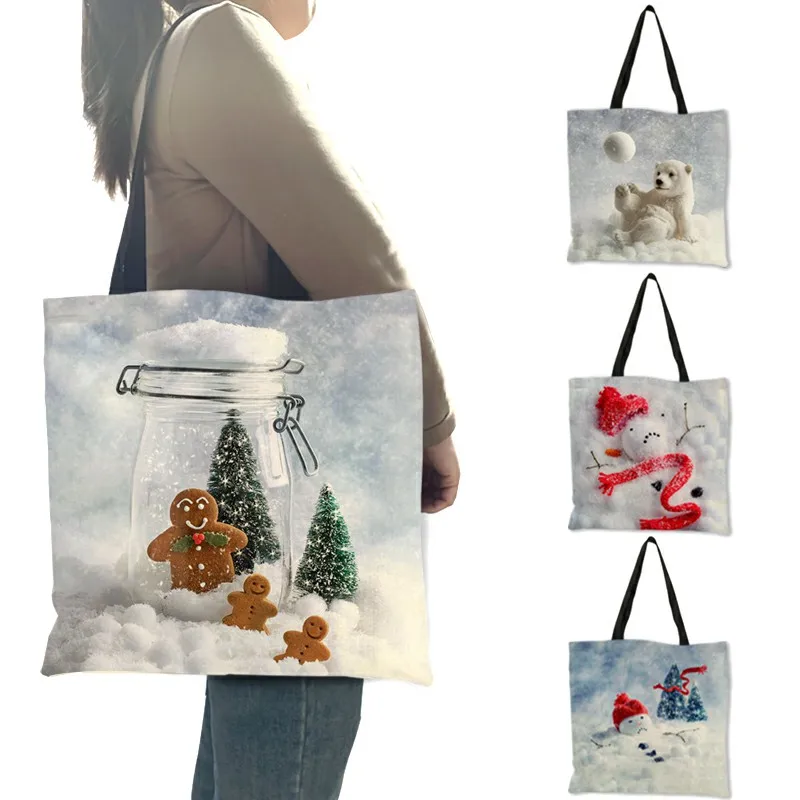Серия Счастливого Рождества Женская сумка Снеговик Олень полярный медведь в снегу напечатанная сумка через плечо эко большая хозяйственная сумка B13118