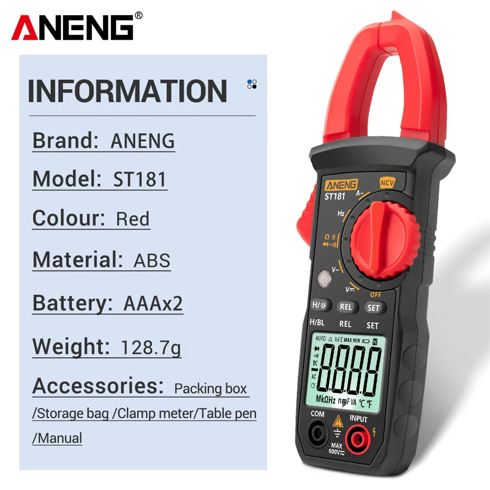 Мультиметр ANENG ST180ST181, цифровой клещи, 4000 отсчетов, тестер ...