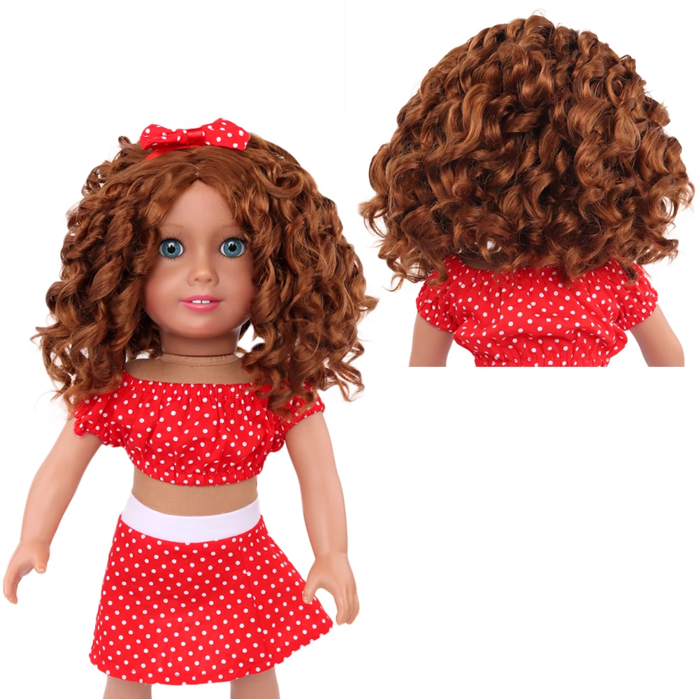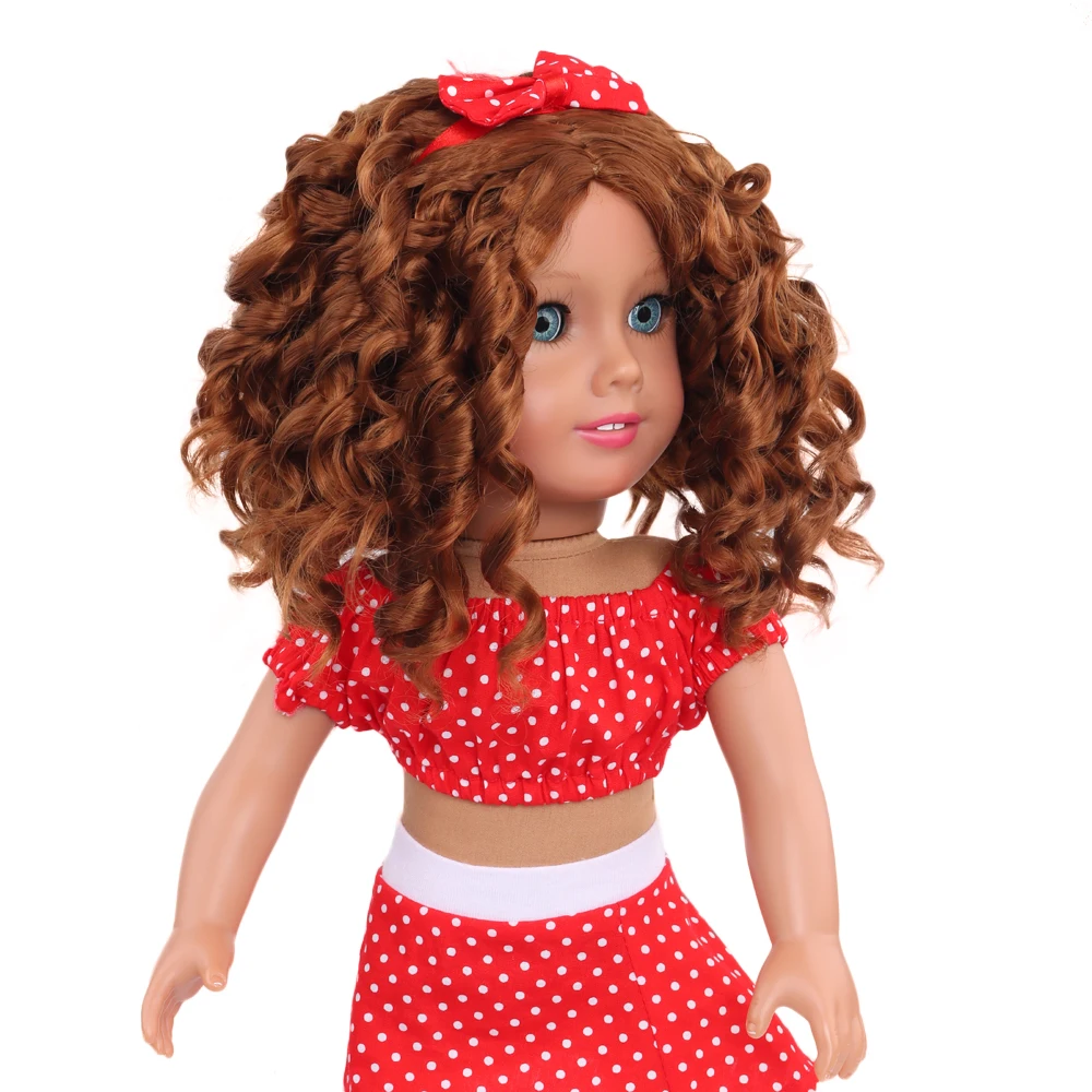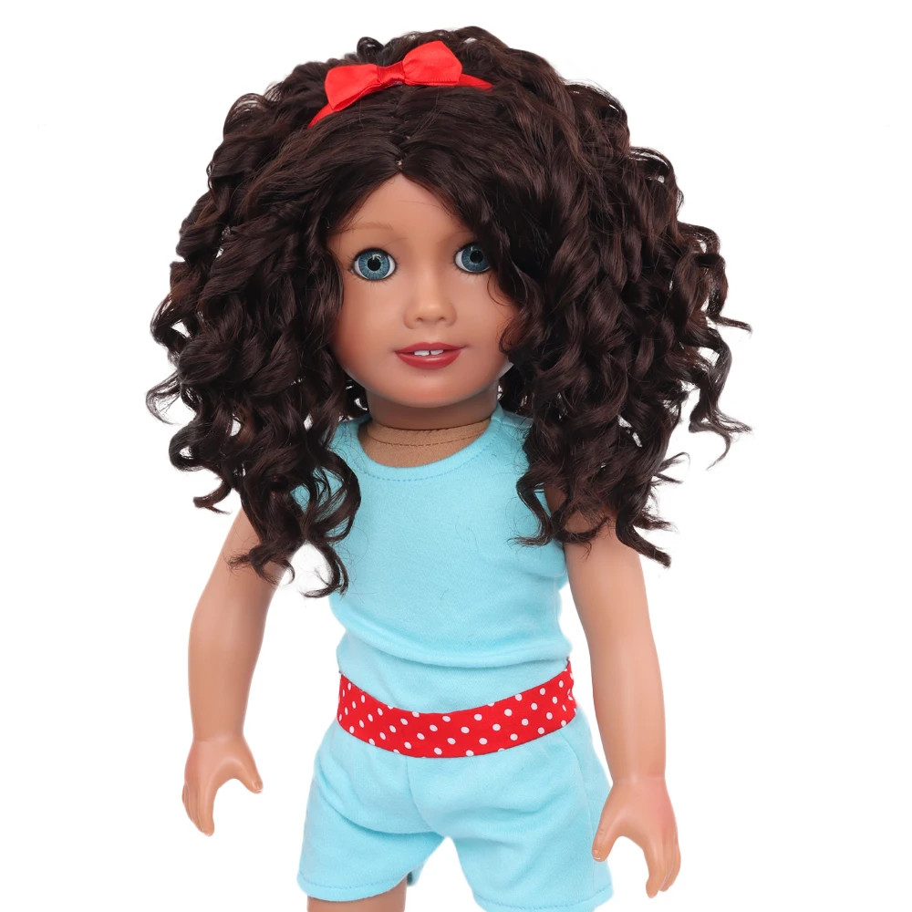Кукольный парик для американских кукол, 18-дюймовые аксессуары для кукол, вьющиеся волосы средней длины естественного цвета, устойчивый волнистый парик для кукол