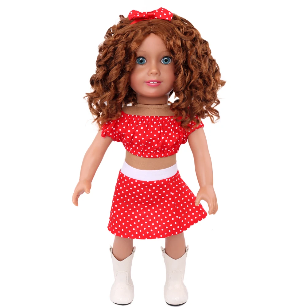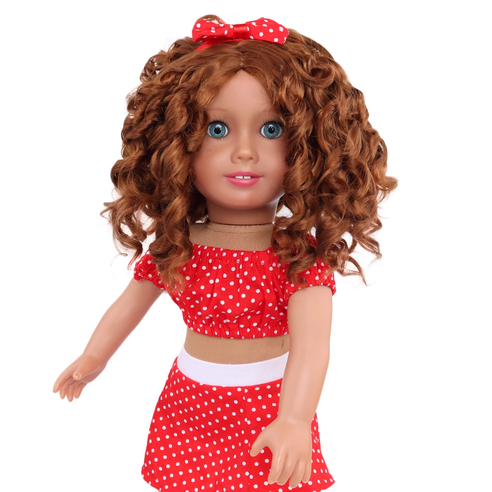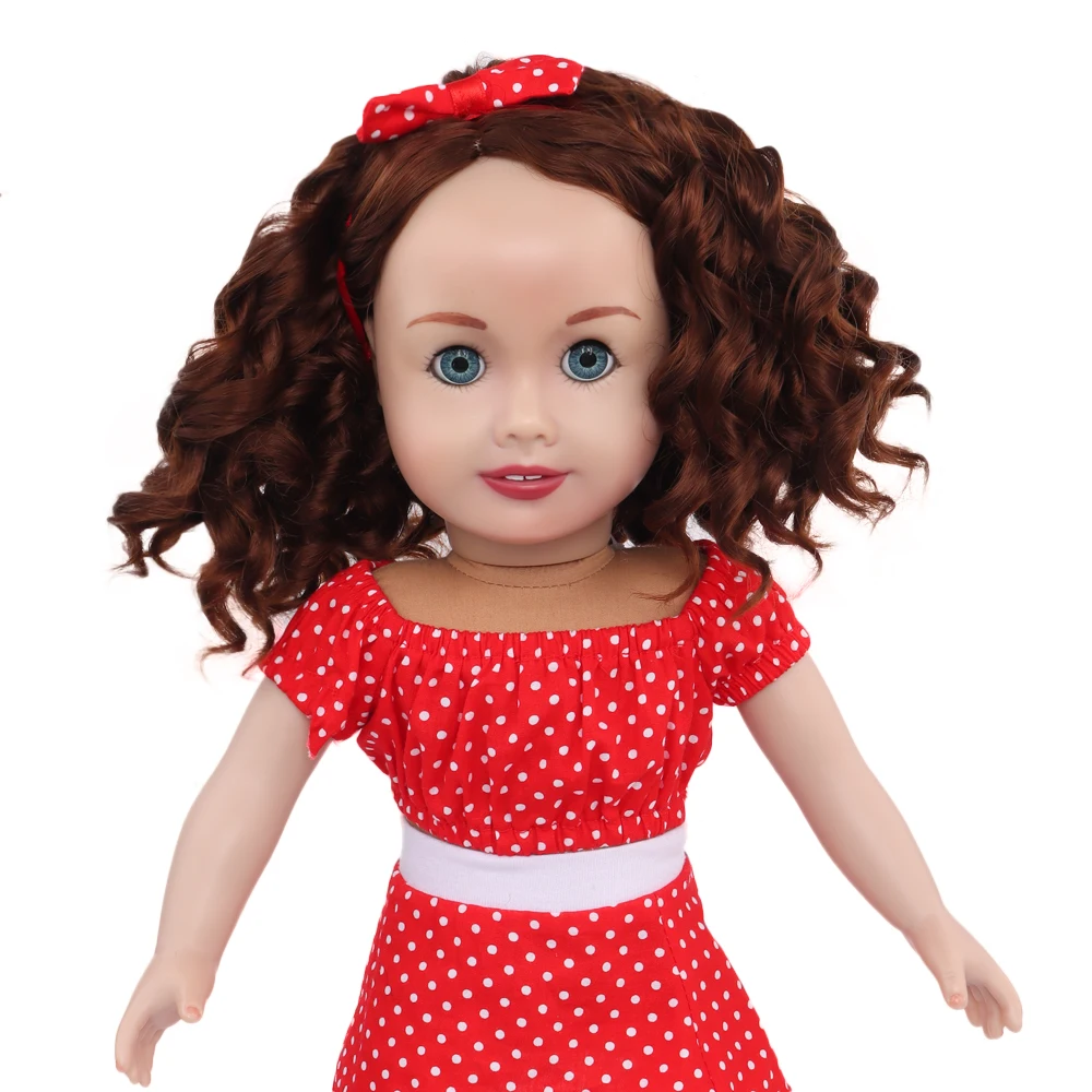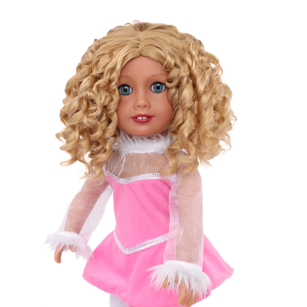 Кукольный парик для американских кукол, 18-дюймовые аксессуары для кукол, вьющиеся волосы средней длины естественного цвета, устойчивый волнистый парик для кукол