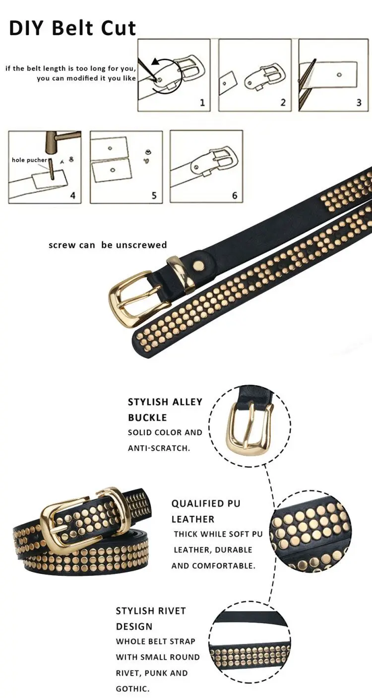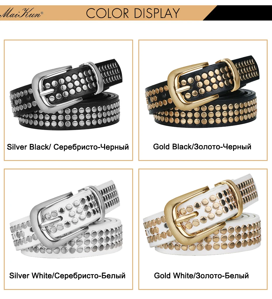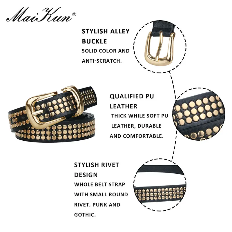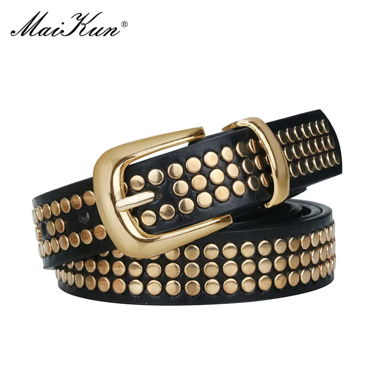 Maikun Женский Ремень Из Кожи ПУ Роскошный Ремень В Стиле Панк С Заклепками И Булавочной Пряжкой В Европейском И Фмериканском Стиле